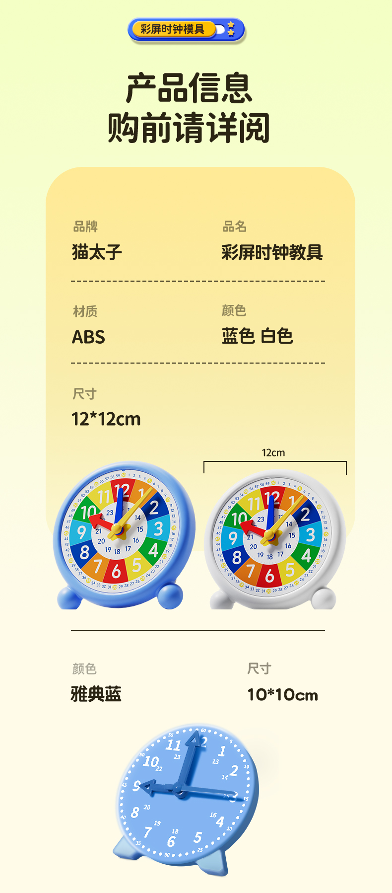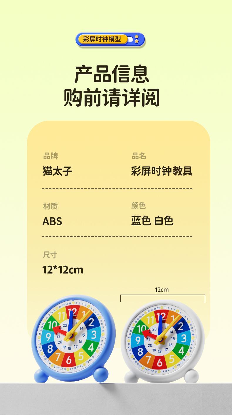猫太子小学生教学钟表模型1-3年级教材同步彩屏时钟教学模型 商品缩略图0 猫太子小学生教学钟表模型1-3年级教材同步彩屏时钟教学模型 商品缩略图1 猫太子小学生教学钟表模型1-3年级教材同步彩屏时钟教学模型 商品缩略图2 猫太子小学生教学钟表模型1-3年级教材同步彩屏时钟教学模型 商品缩略图3
