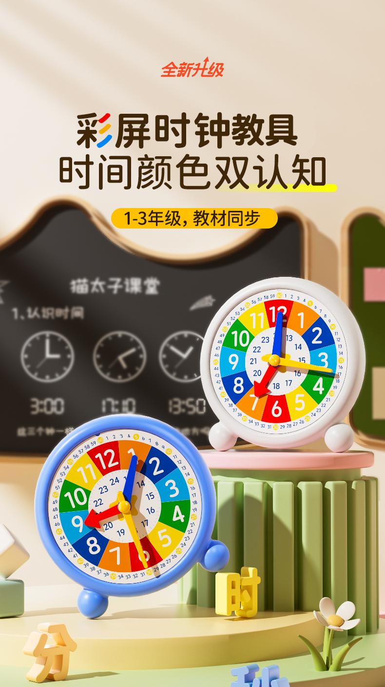 猫太子小学生教学钟表模型1-3年级教材同步彩屏时钟教学模型