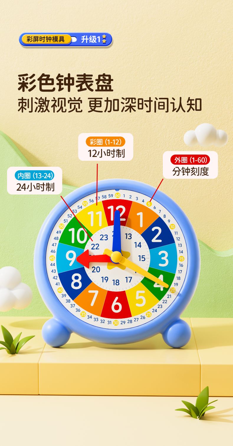 猫太子小学生教学钟表模型1-3年级教材同步彩屏时钟教学模型 商品图1