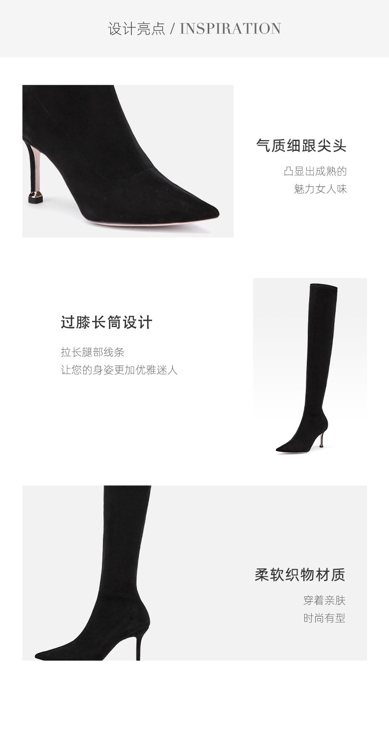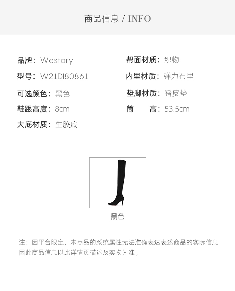 westory2021年秋冬季过膝长靴女新款尖头细高跟欧美靴W21DI80861