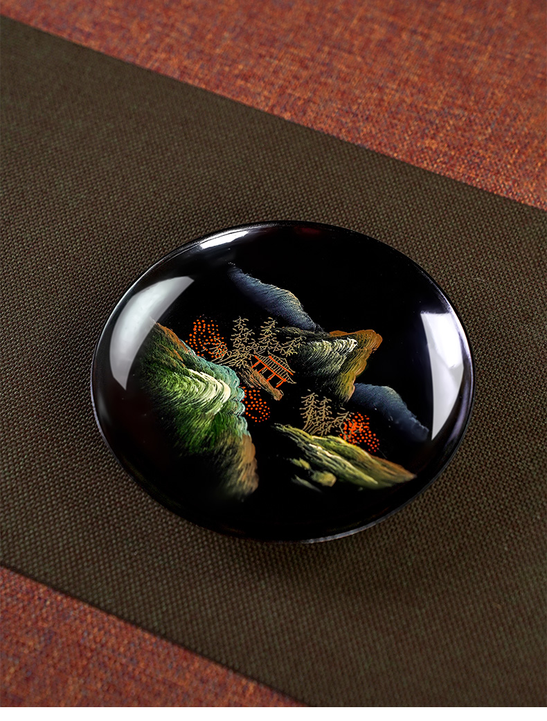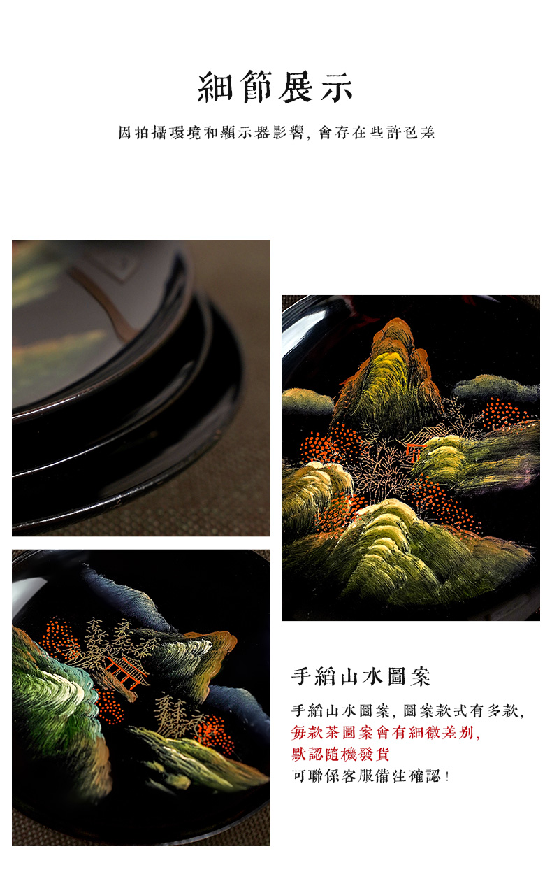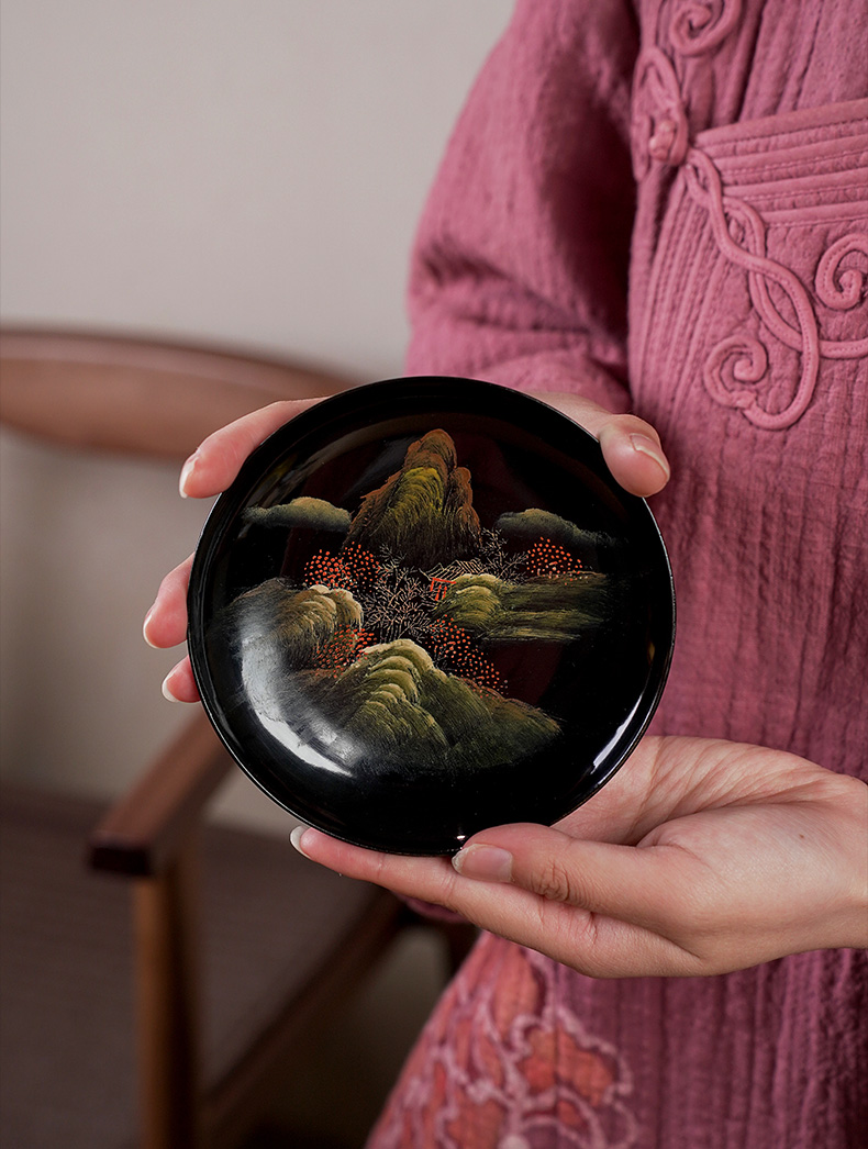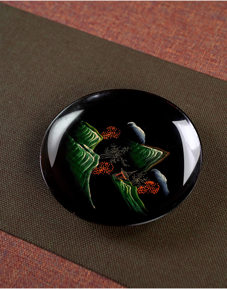 泰山大漆/青绿山水杯托 【图案随机发】 怀旧复古大漆杯托手绘青山绿水杯垫壶承底托