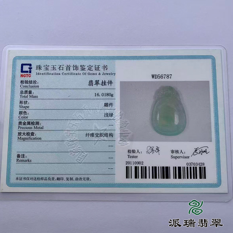 派瑞翡翠 18k金翡翠吊坠 冰种 满绿