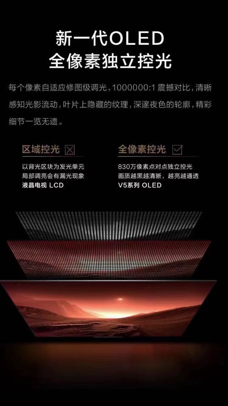 康佳(KONKA)OLED55V5 55英寸 OLED 全像素控光 3.55mm纤薄全面屏 JBL音响 3+32GB游戏电视