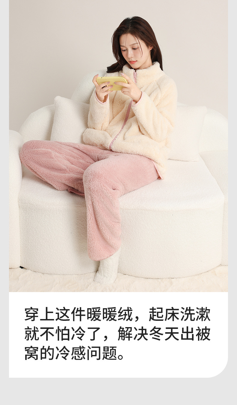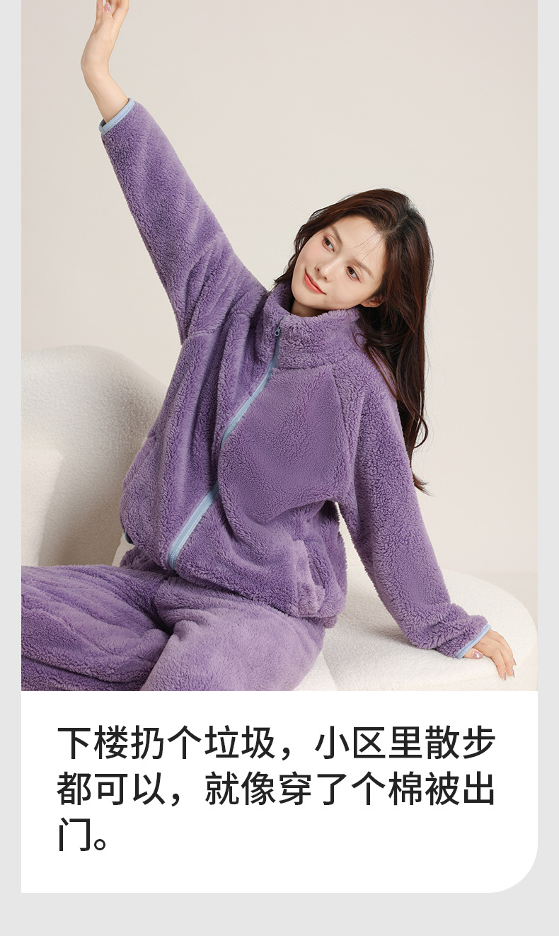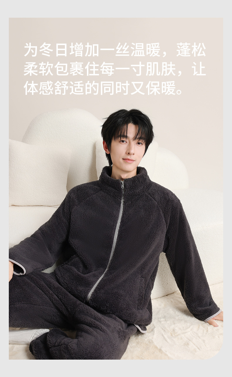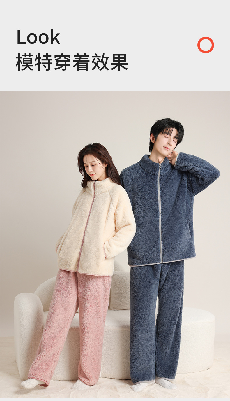 希燕茵情侣秋冬法兰绒加厚睡衣双面绒拉链连帽简约休闲男女士家居服套装XY0021★