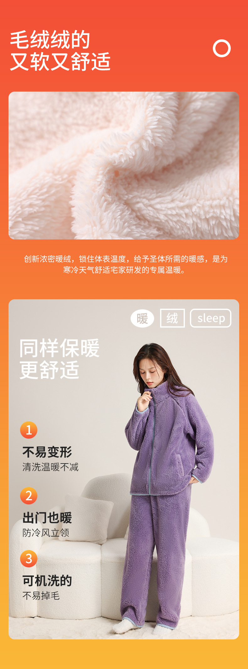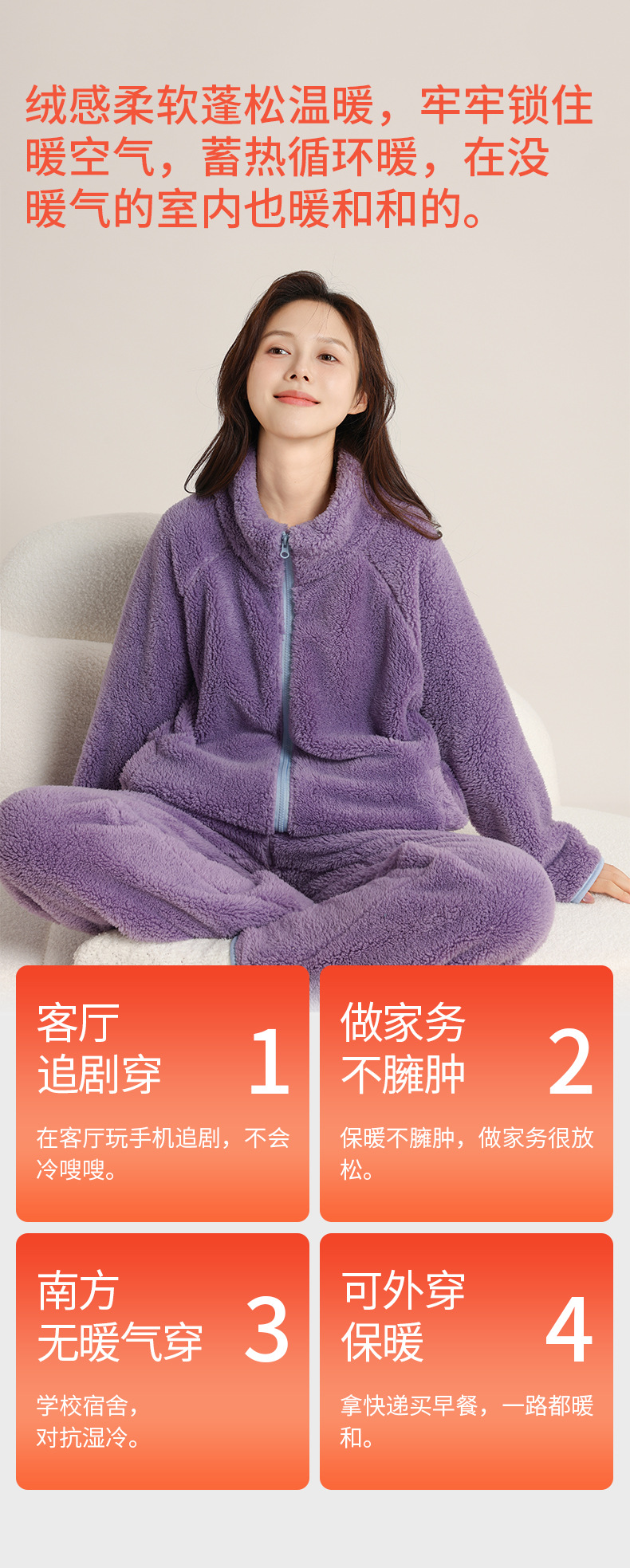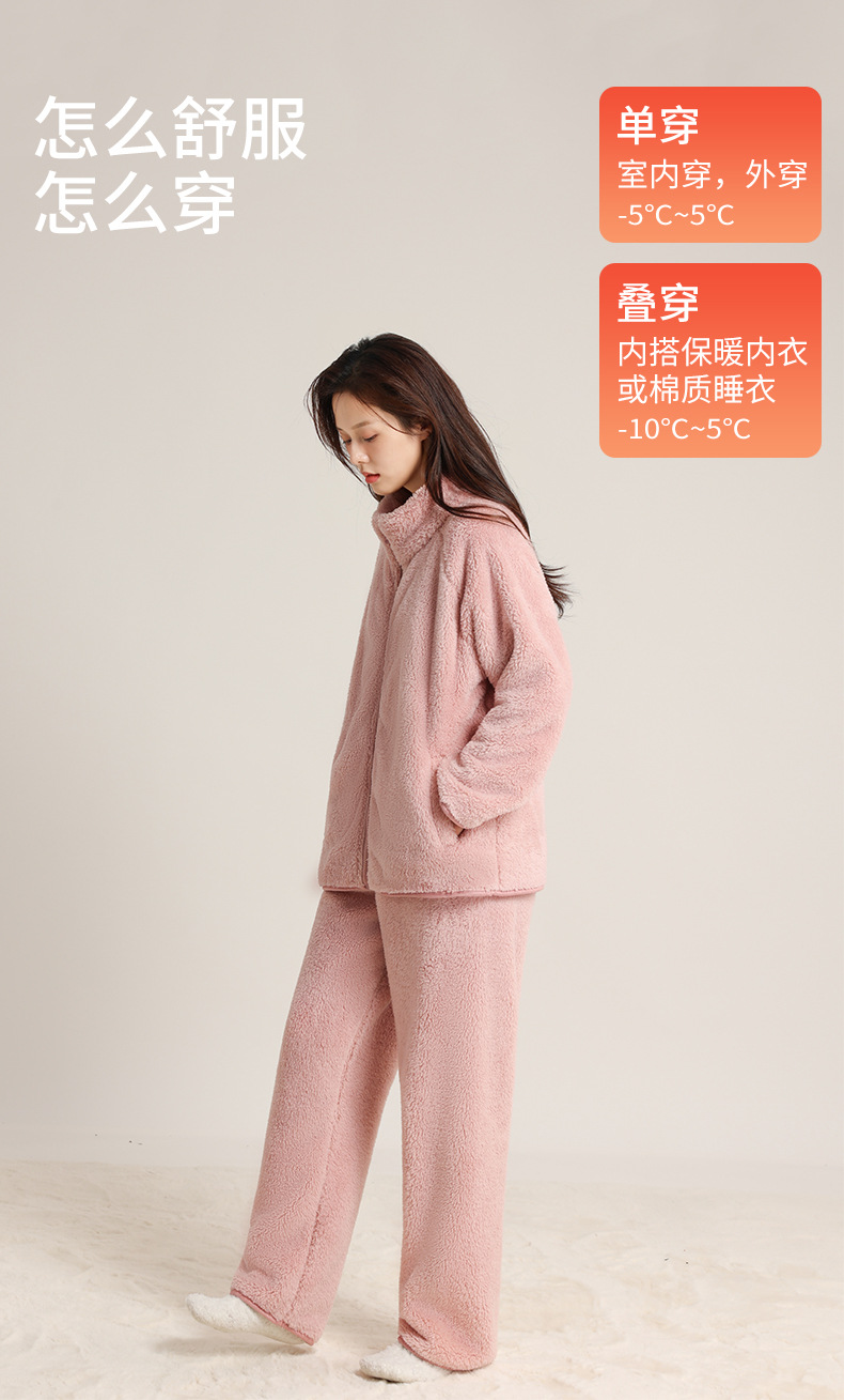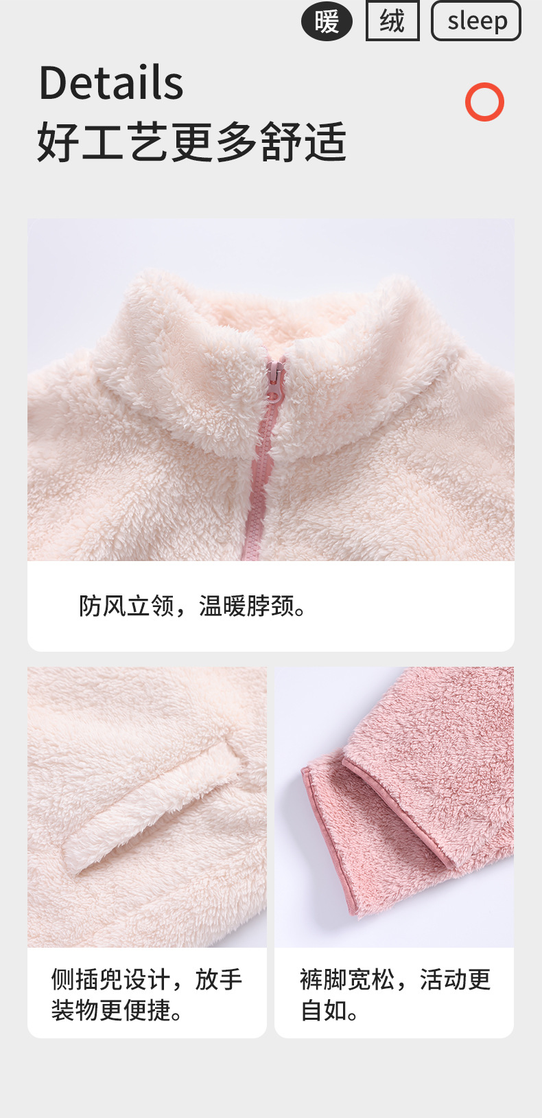 希燕茵情侣秋冬法兰绒加厚睡衣双面绒拉链连帽简约休闲男女士家居服套装XY0021★