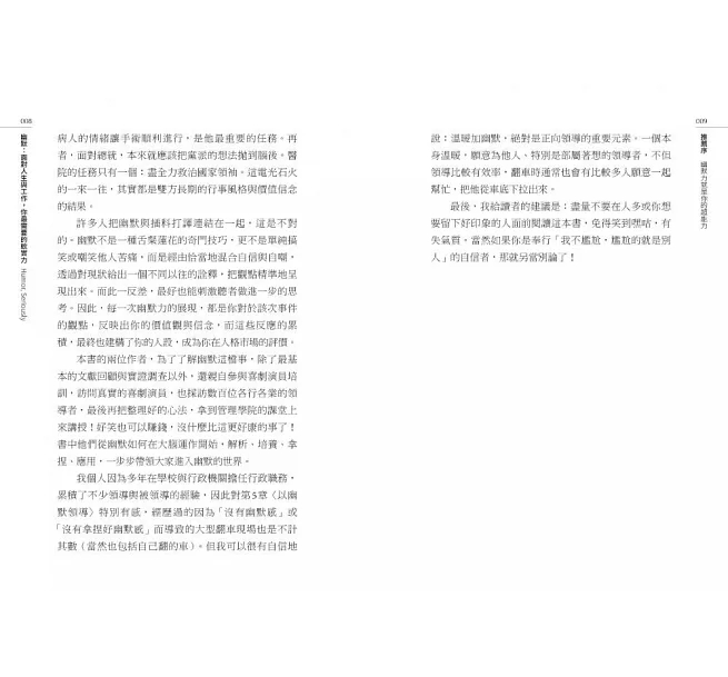 從高人氣脫口秀和喜劇現場、白宮辦公室開會實況、美國國務卿與俄國外長的政治角力場合,以及蘋果、Google和皮克斯的辦公室,再到巴菲特的年度股東大會上,兩位作者透過精彩、有趣的實例,介紹了幽默的技巧和應用。