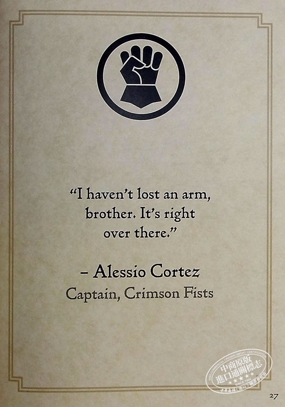 关于兄弟情谊或勇气的誓言。关于恐惧本质的思考,或关于在败无疑的境地中展现勇气的思考。这本汇集了传奇星际战士有力的名言,将赋予你面对人生挑战所需的力量和决心!