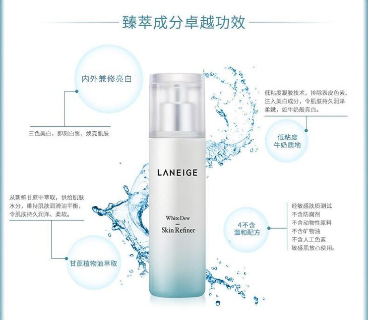 【香港直邮】兰芝(LANEIGE) 臻白净透细肤水120ml爽肤水(透白)