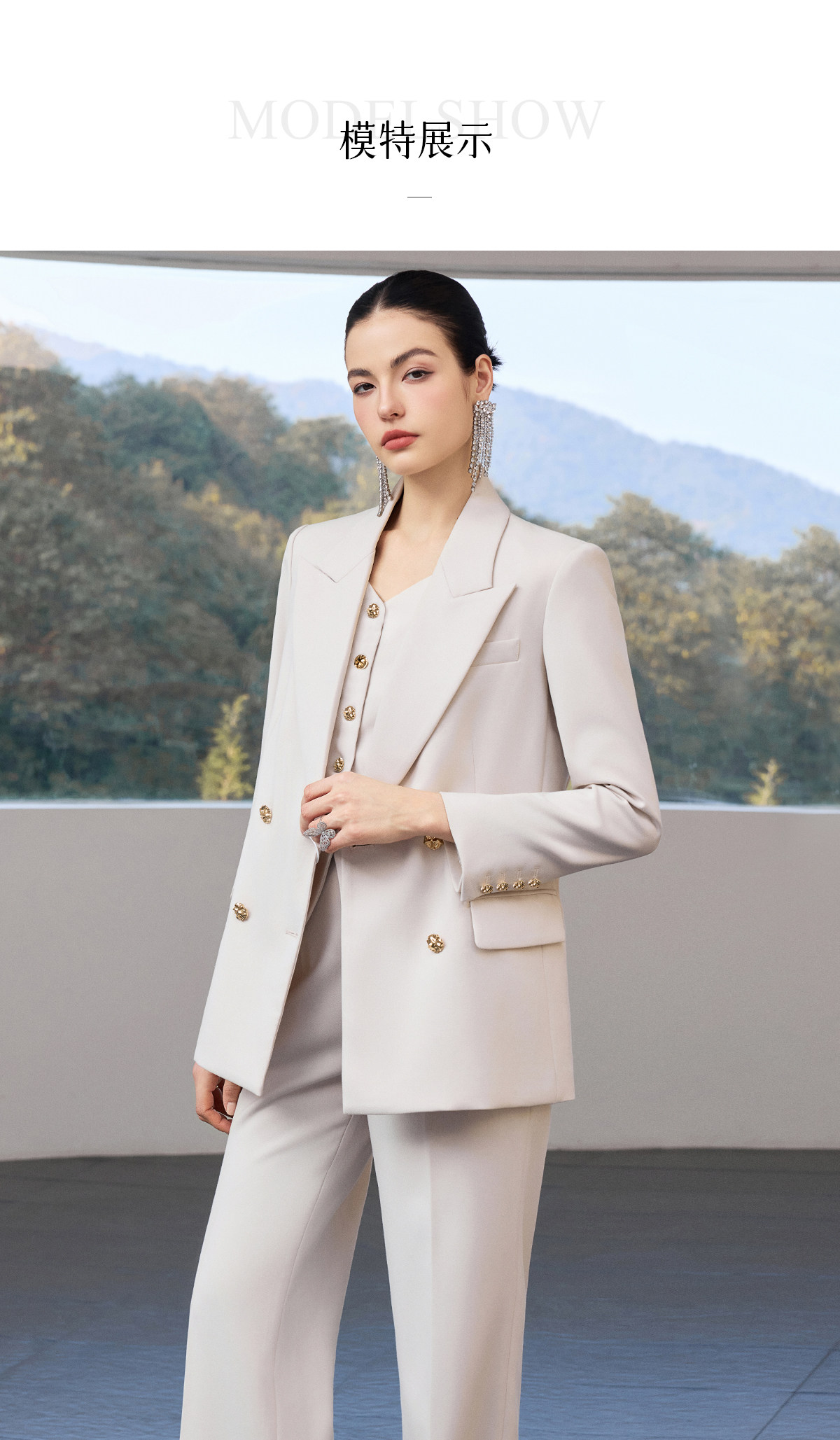 IWY/杏色高级感西装套装女气质通勤英伦风职业装显瘦工作服正装25CVP936