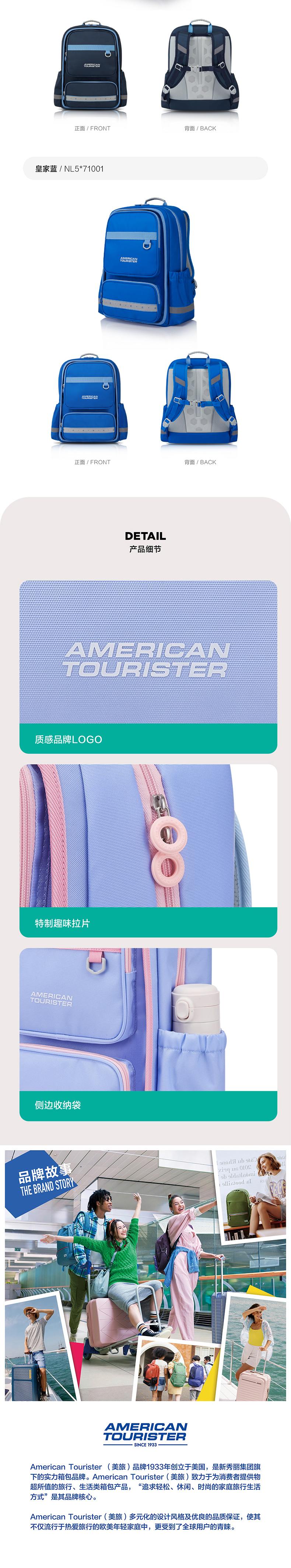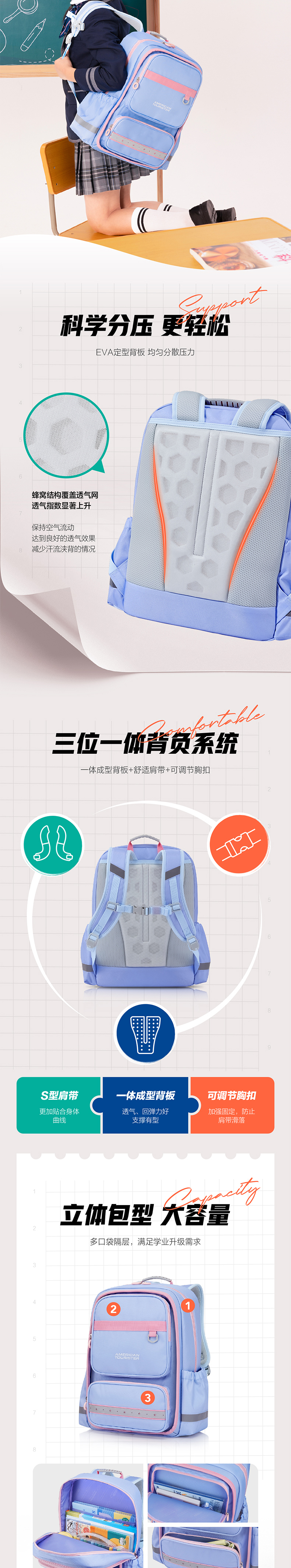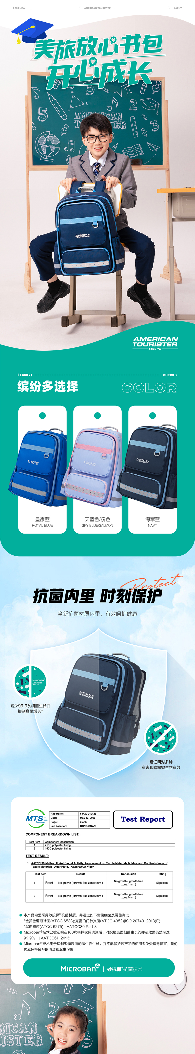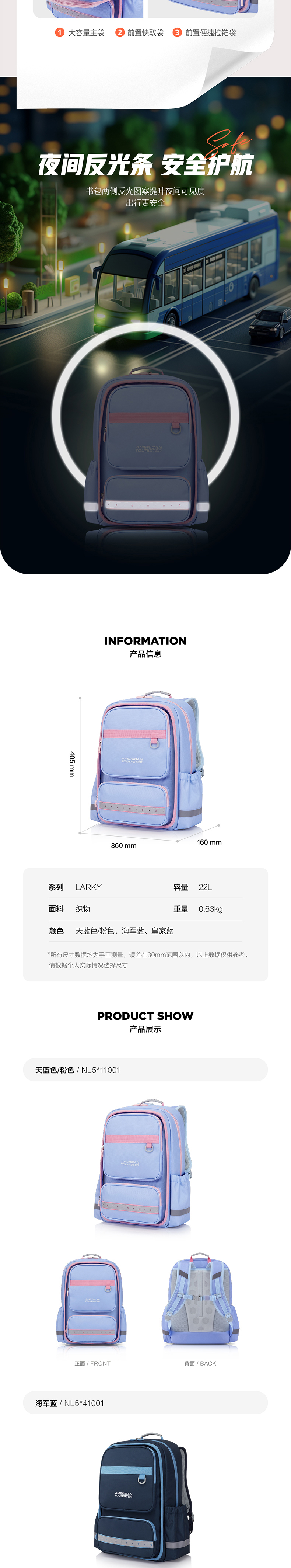 【美旅】LARKY系列抗菌内里一体成型背板儿童书包NL5*001