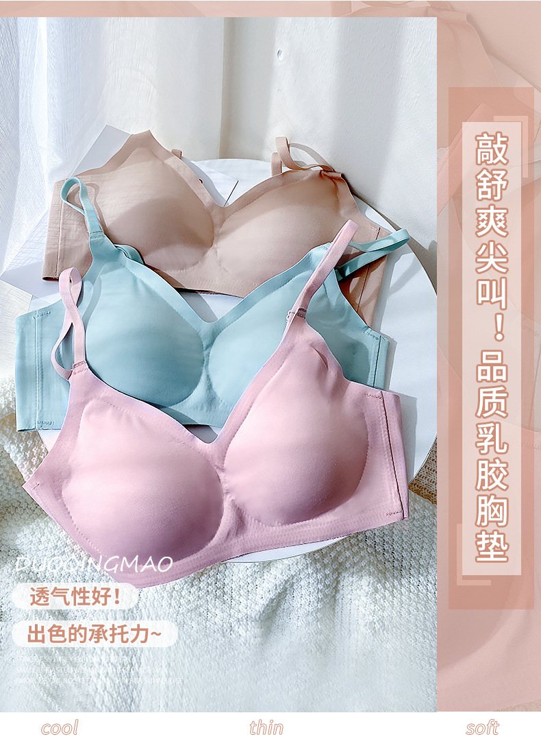 无痕冰丝乳胶杯内衣小胸女聚拢收副乳多情猫无钢圈文胸罩夏季薄款