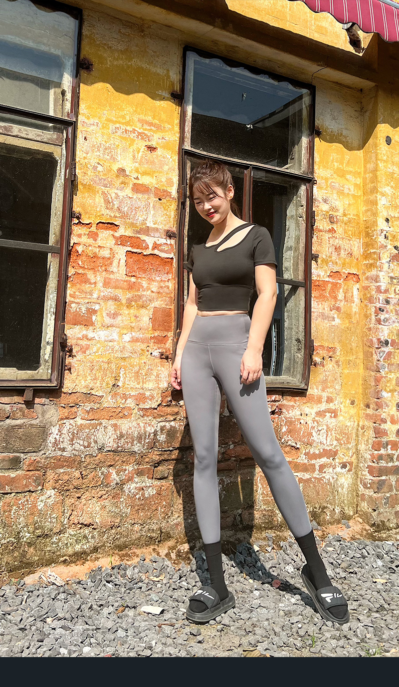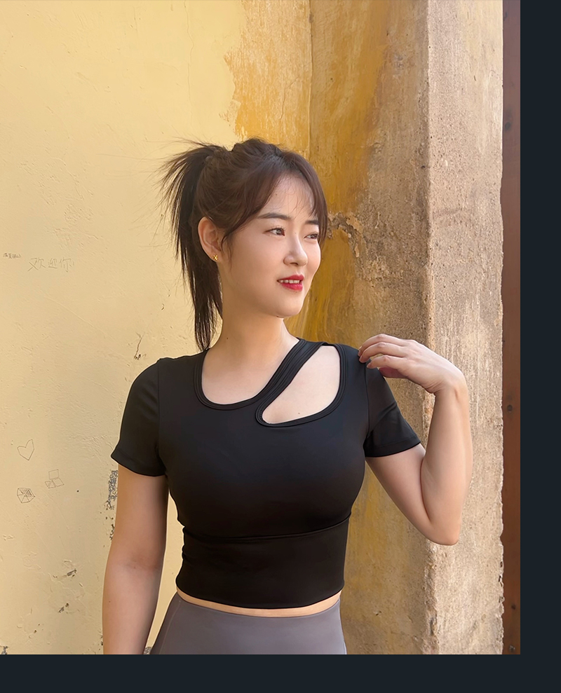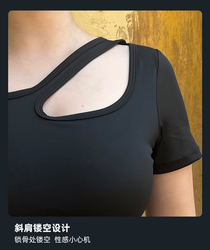 【现货秒发】壁虎瑜伽【2410TZ319】斜肩显瘦套装(一体式胸垫)