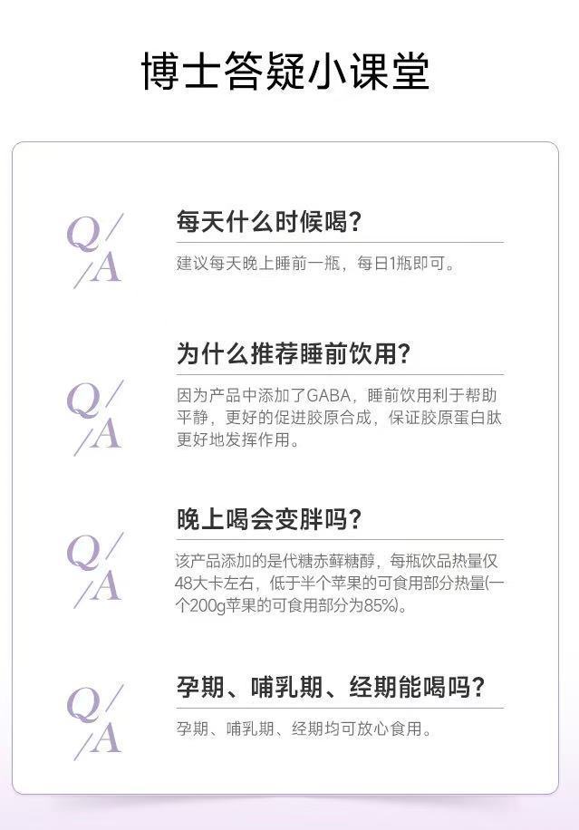 ✅ 特别添加 GABA 胶原蛋白每天在夜间分泌组装,白天再慢慢降解,外援摄入一定量 GABA 可助平静,同时助力胶原蛋白的合成。