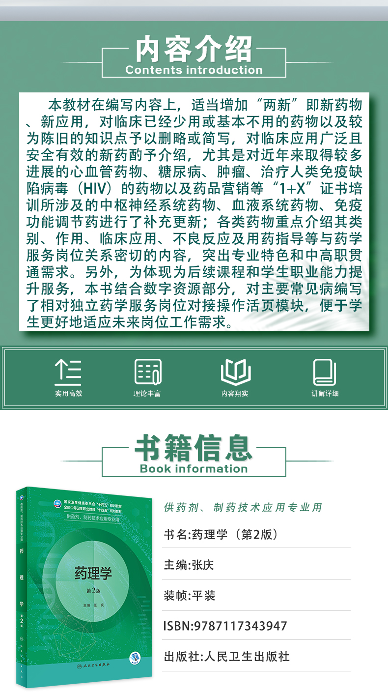 药理学 第2版 张庆主编 卫健委全国中等卫生职业教育十四五规划教材 供药剂制药技术应用专业用 人民卫生出版社9787117343947