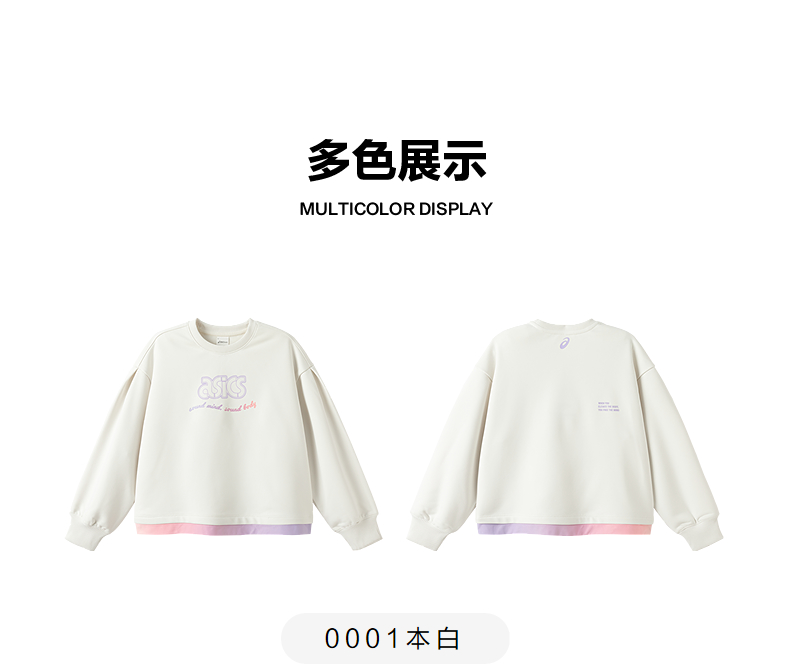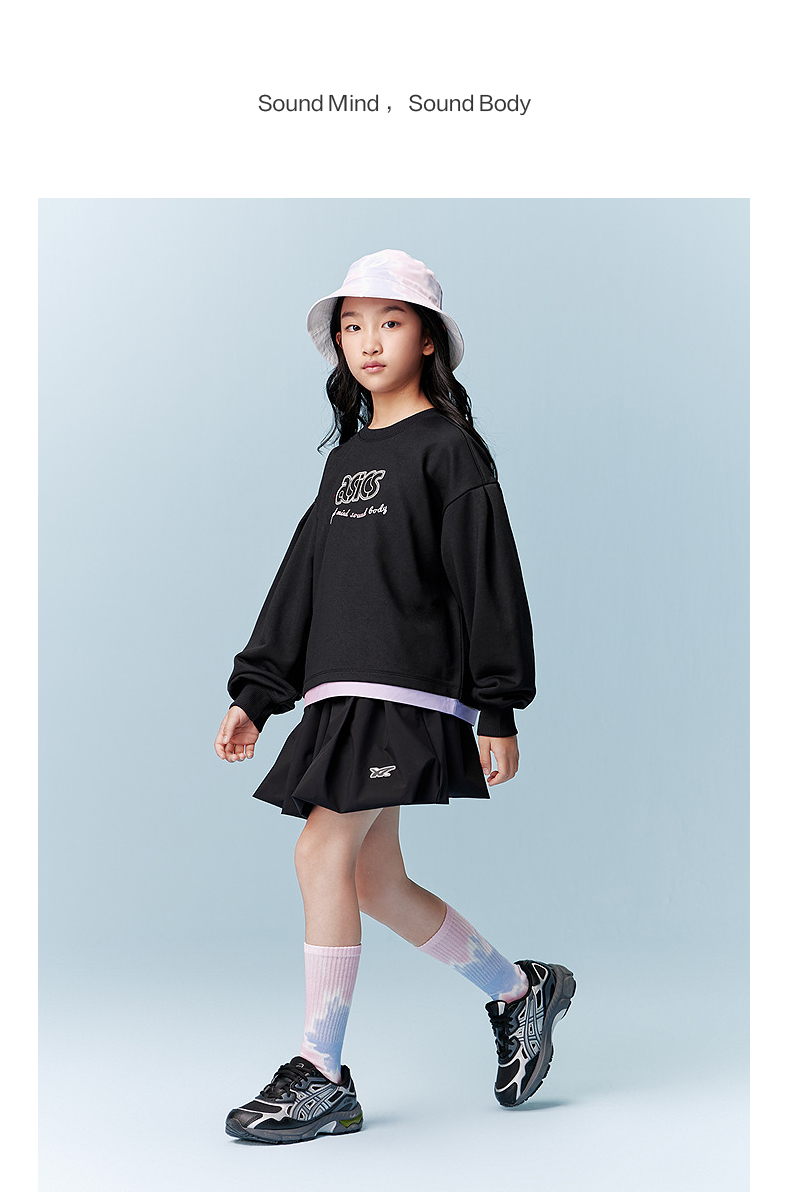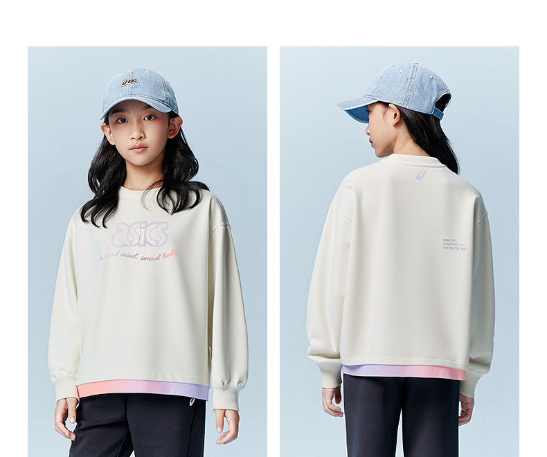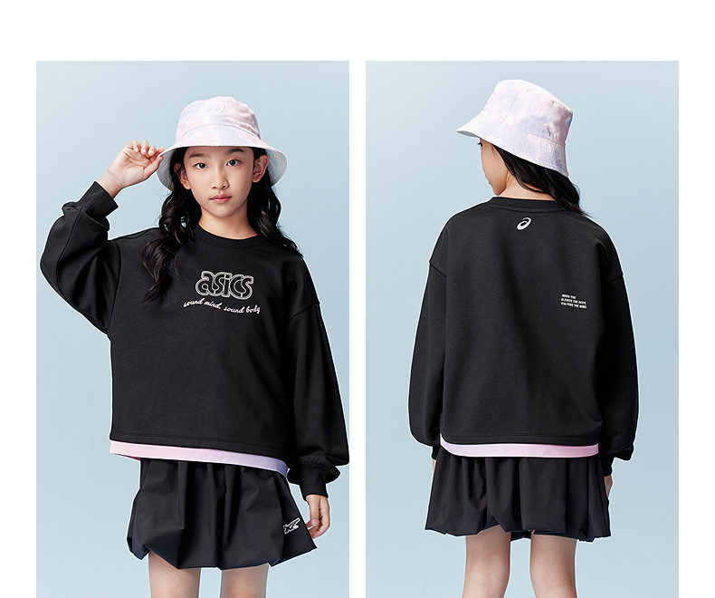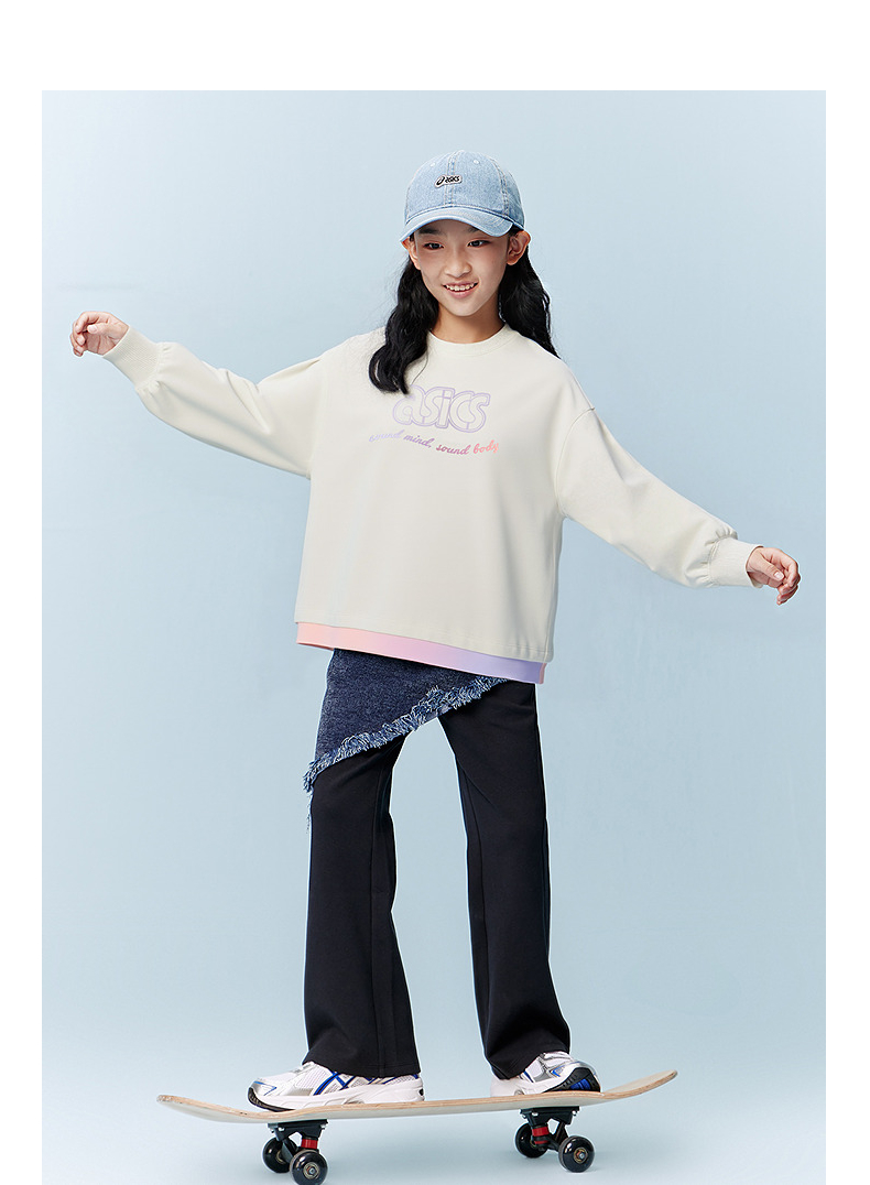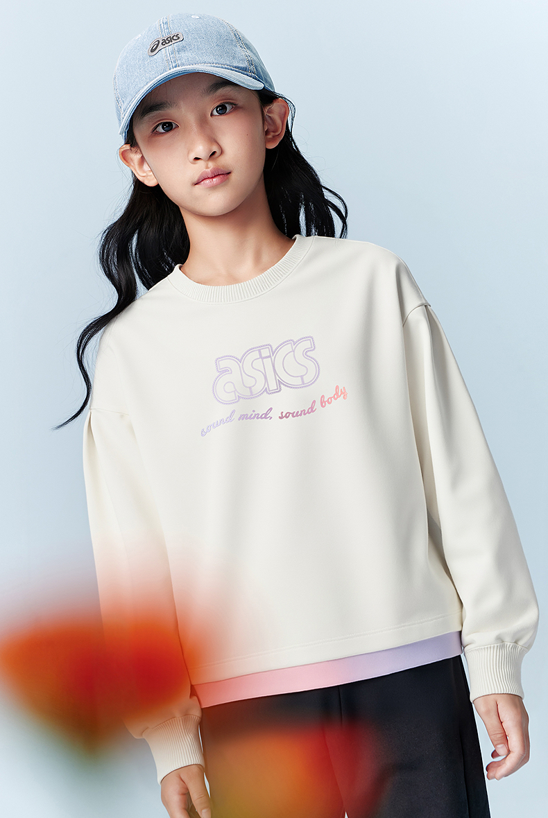 【商场同款】ASICS/亚瑟士儿童2026新款宽松女童卫衣印花纺棉纱