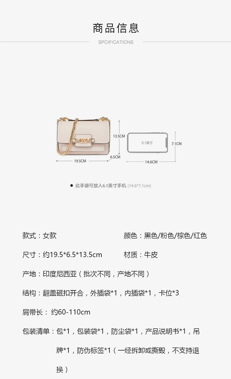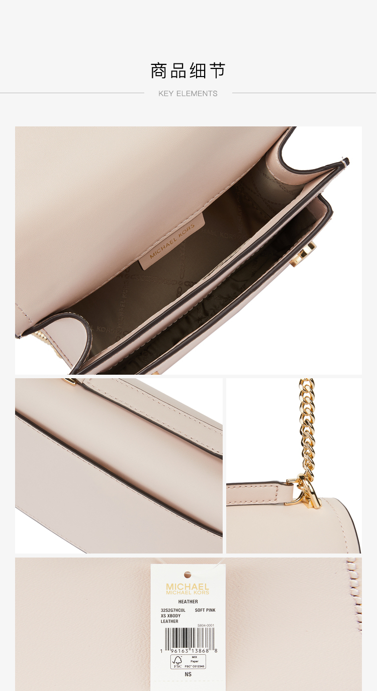 MICHAEL KORS 迈克.科尔斯 MK女包 女士HEATHER系列小号单肩斜挎包 粉色 32S2G7HC0L