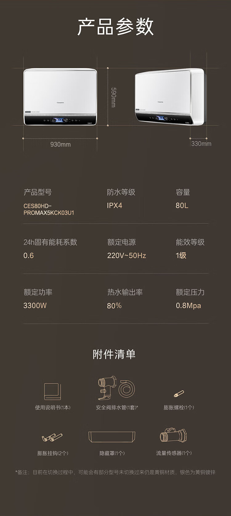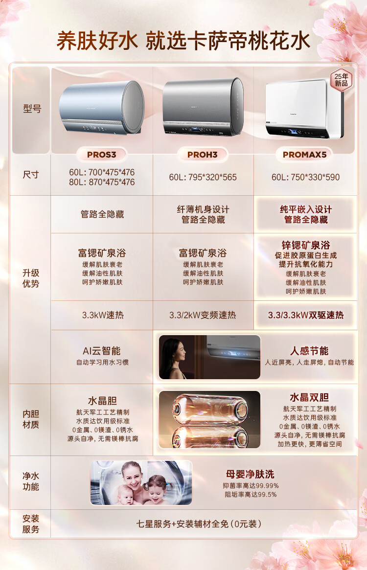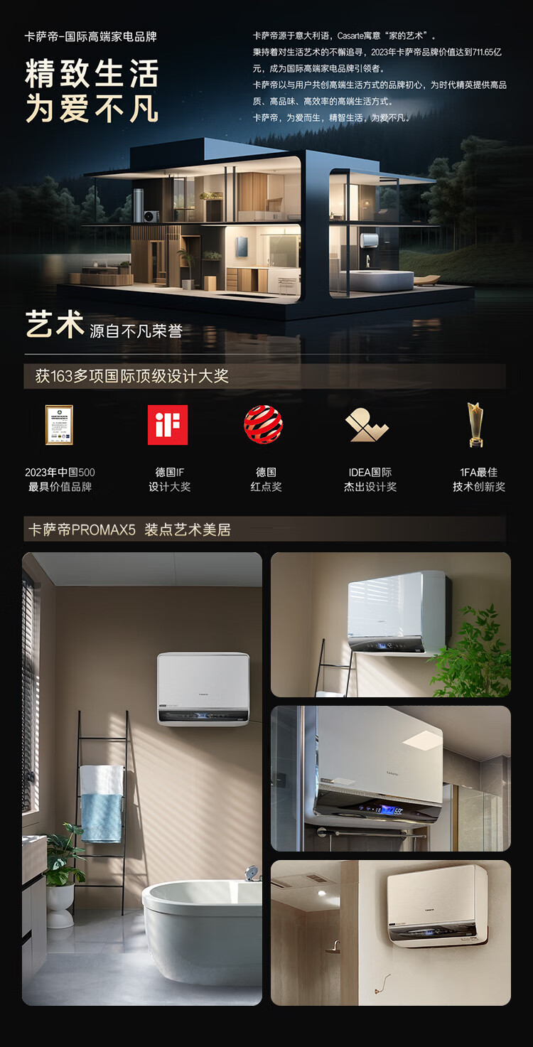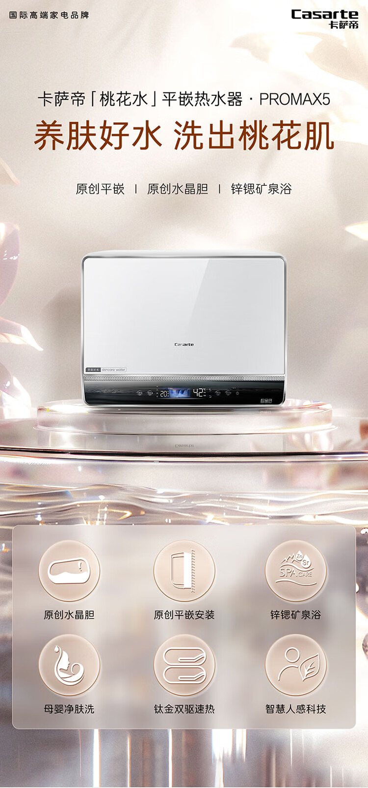 卡萨帝(Casarte)80L【桃花水PROMAX5】热水器电热水器 国家补贴 水晶胆富锶平嵌隐藏安装CES80HD-PROMAX5KCK03U1