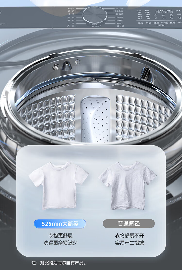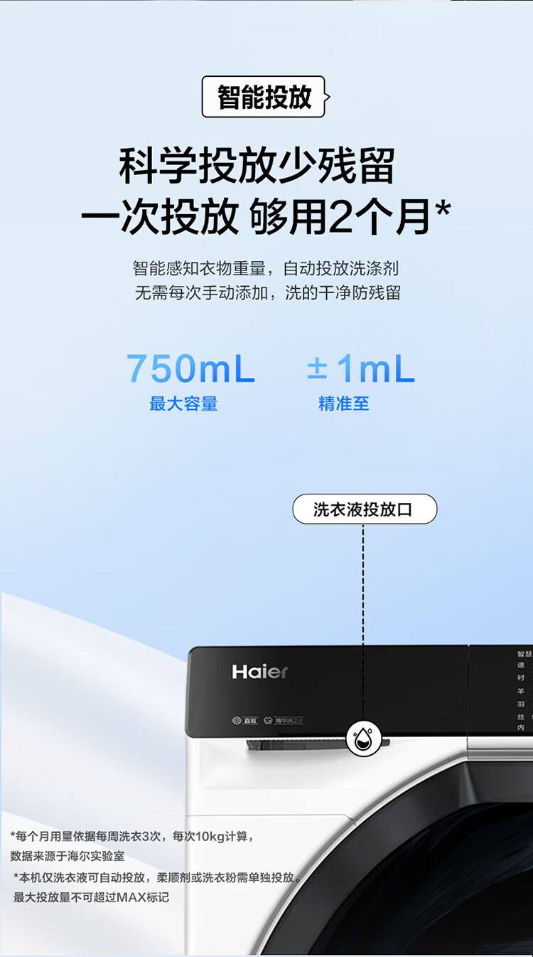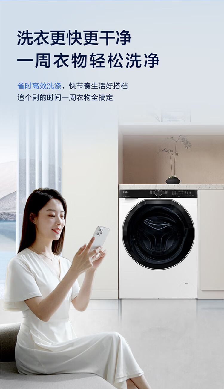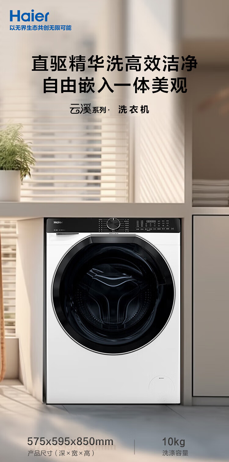 海尔【重磅新品上市-376升级款】云溪白579超薄滚筒洗衣机直驱精华洗2.0全自动10公斤大容量525大筒径 直驱精华洗2.0+超薄全嵌+智投+1.12高洗净比