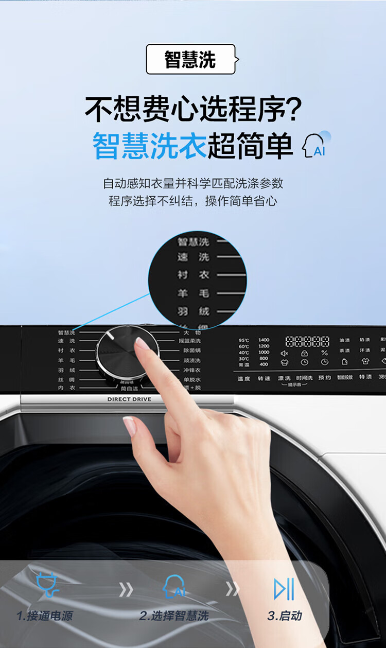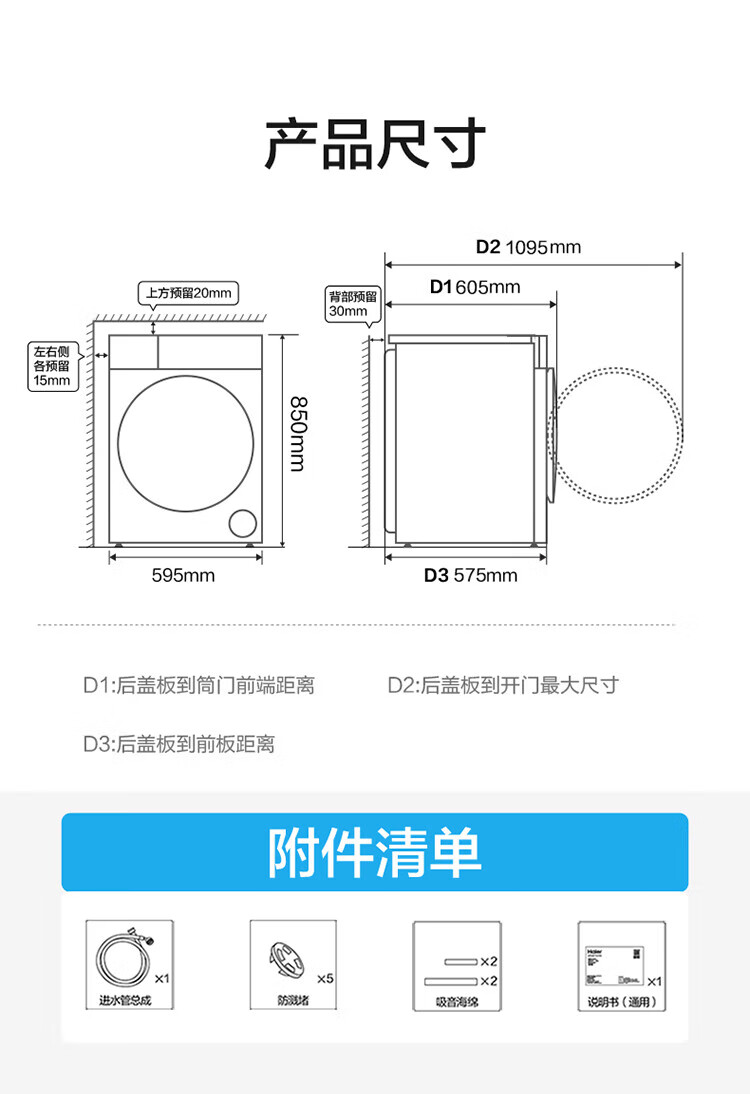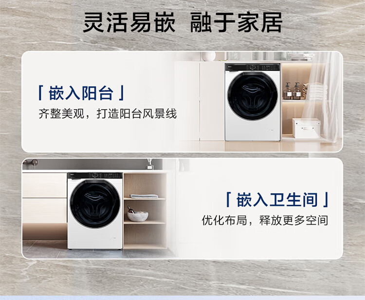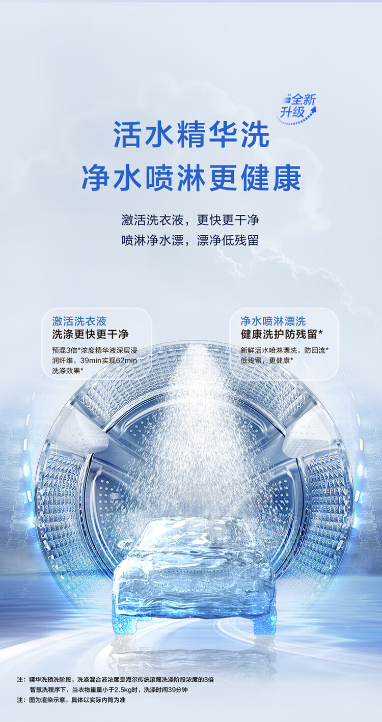 海尔【重磅新品上市-376升级款】云溪白579超薄滚筒洗衣机直驱精华洗2.0全自动10公斤大容量525大筒径 直驱精华洗2.0+超薄全嵌+智投+1.12高洗净比
