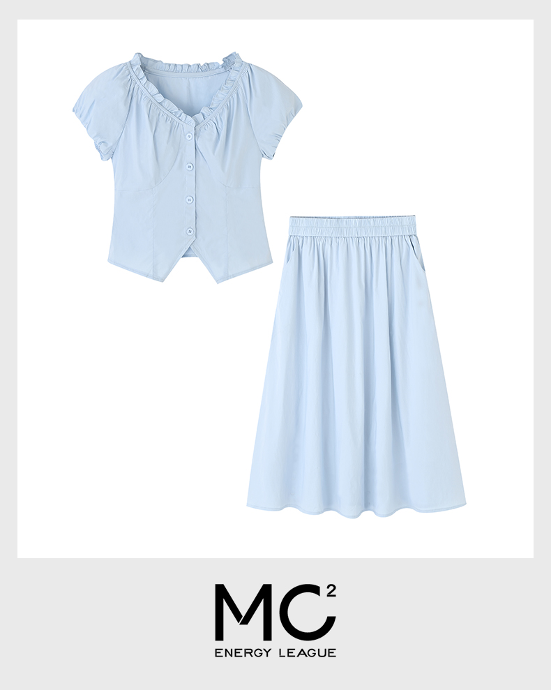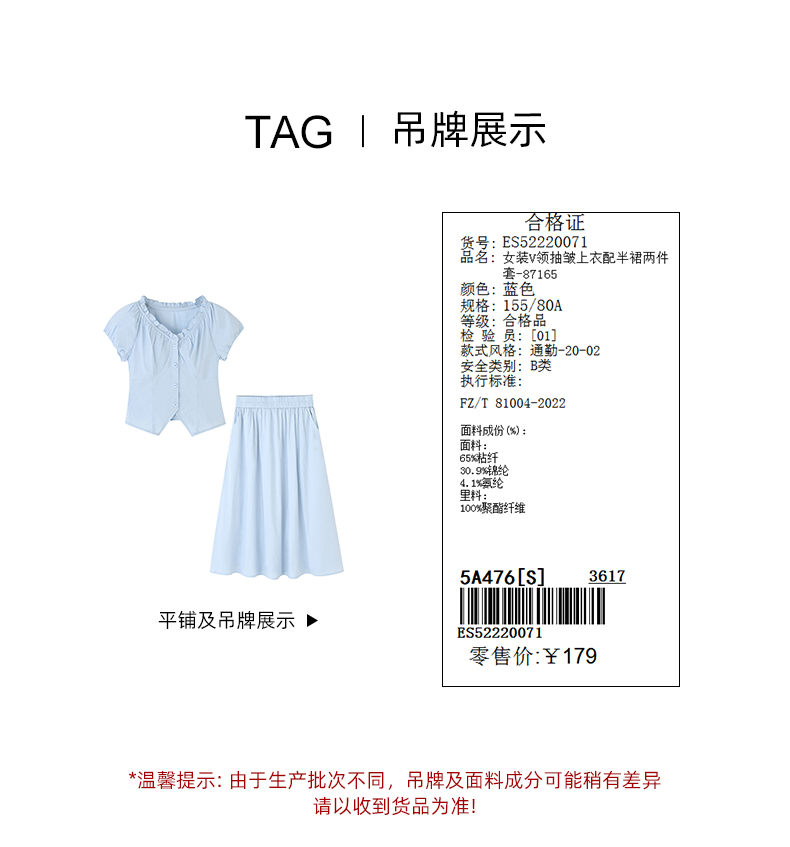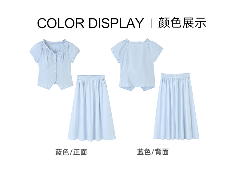 女装V领抽皱上衣配半裙两件套-87165S5222007