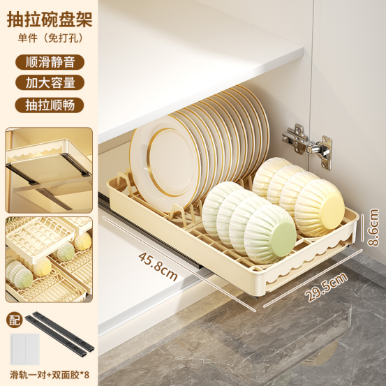 【免安装橱柜抽拉式碗碟置物架8514】 💧卫生又干净,超级实用, ✅ 免打孔抽!抽拉碗盘架,厨房收纳秒变魔术空间 告别打孔烦恼!伸缩碗盘架,抽拉即取的懒人收纳神器 ✅ 厨房扩容王!免打孔抽拉碗盘架,3秒安装告别凌乱 一抽一放超顺手!免打孔碗盘架,小户型厨房救星 ✅ 磁吸/粘贴随心装!可抽拉碗筷 食物 保鲜膜等等任何需要收纳的东西, 超级方便实用 滑轨伸缩的设计 加大容量 大大提升厨房收纳空间