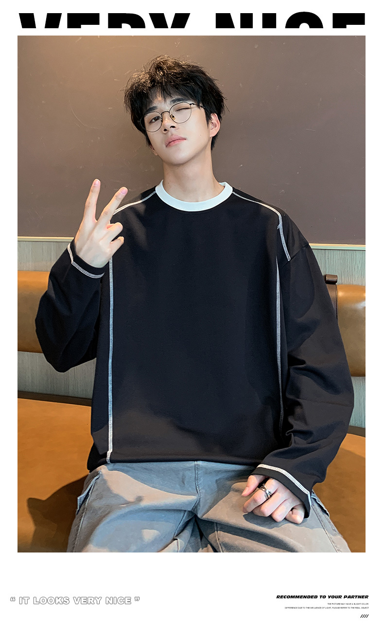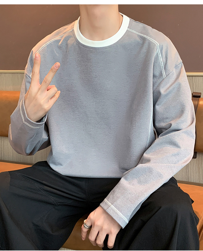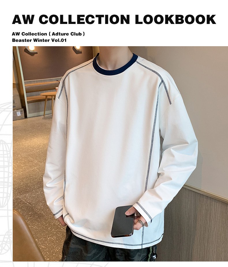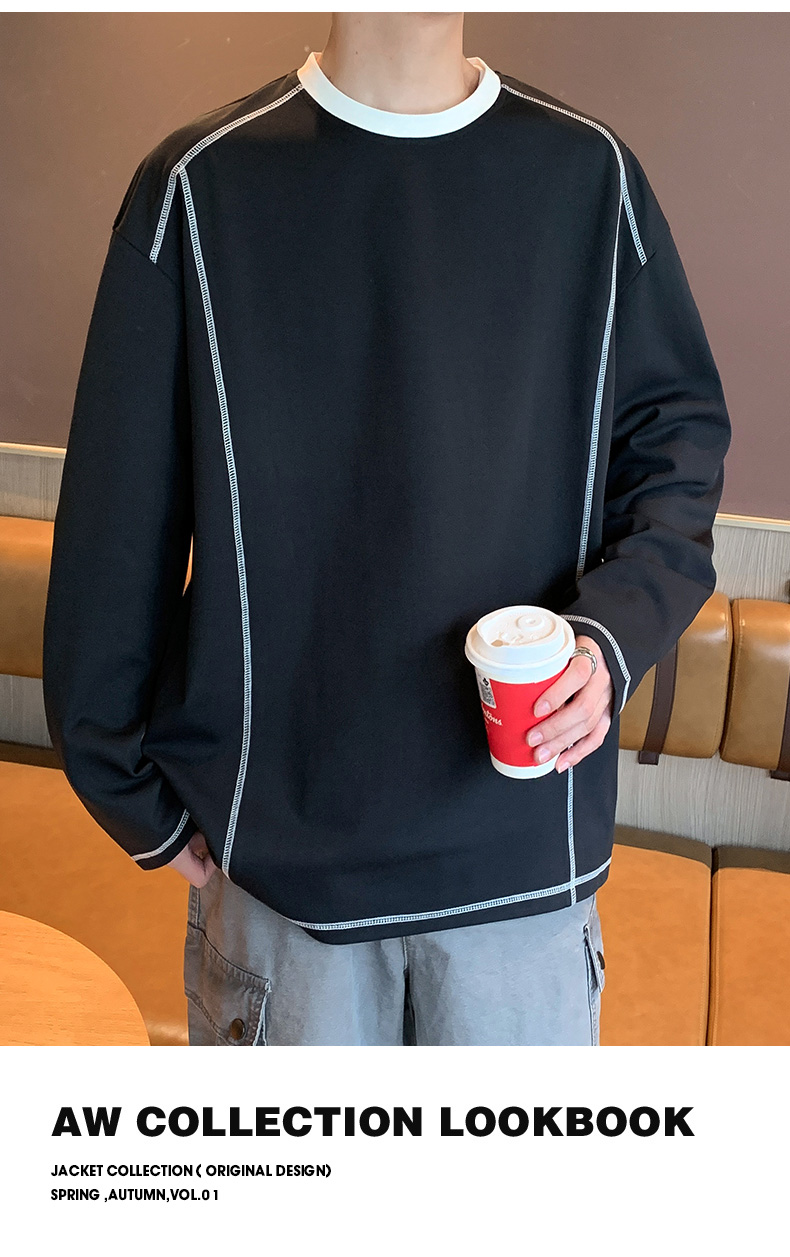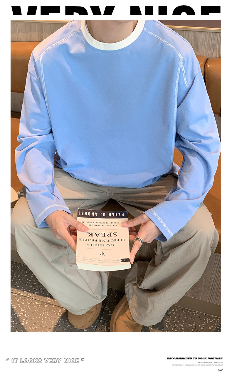 英国轻奢Schenvega 爆款迪桑平纹插色领长袖T恤卫衣A72-7902