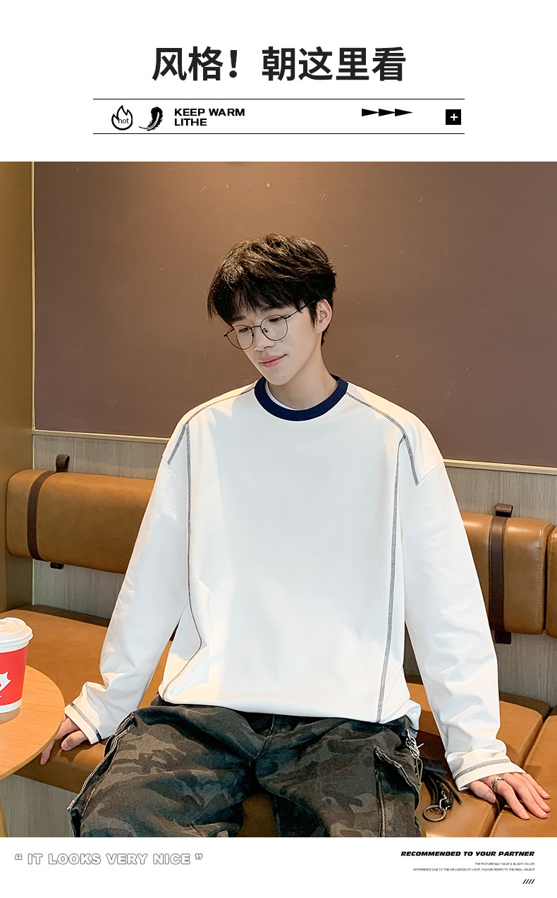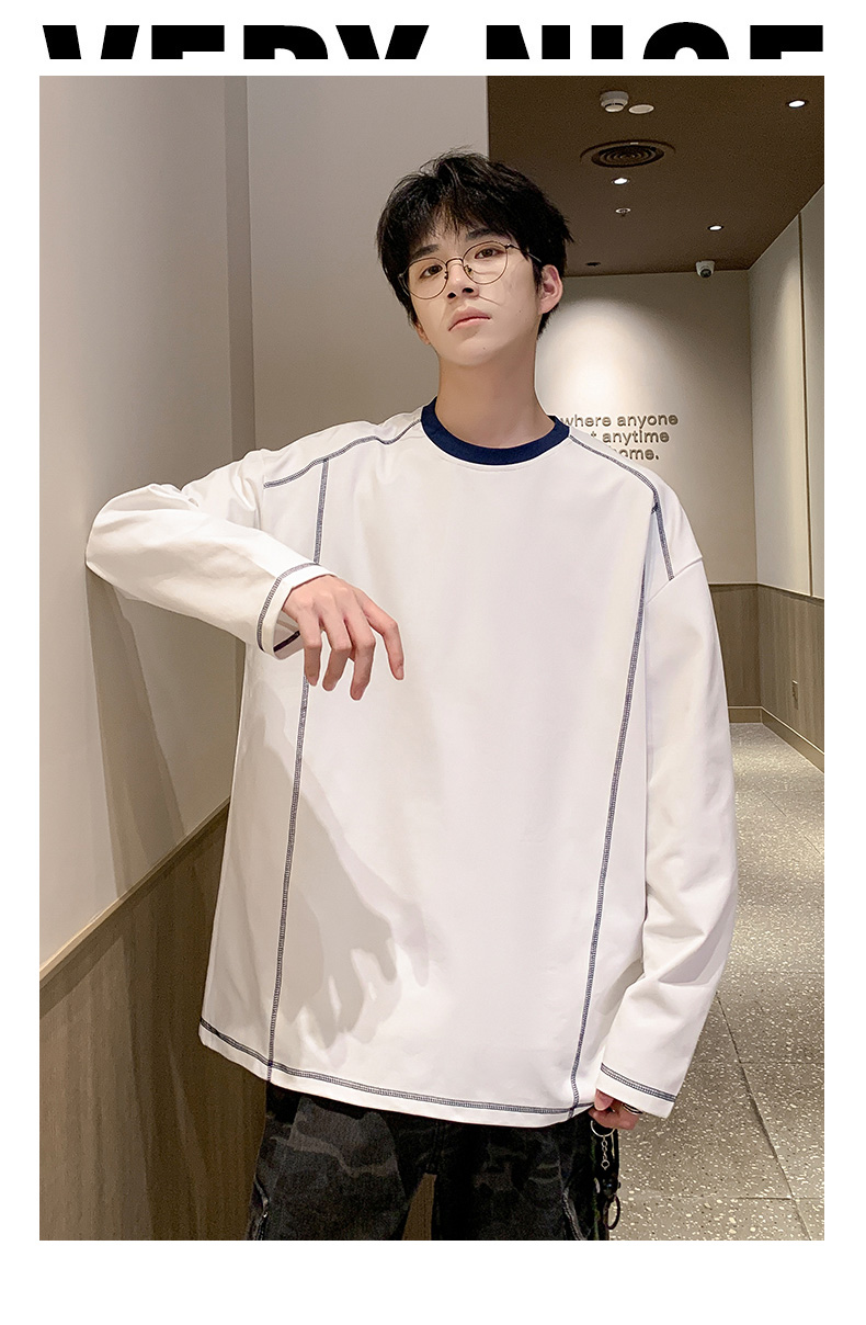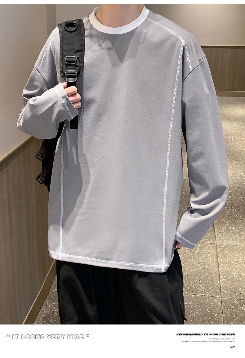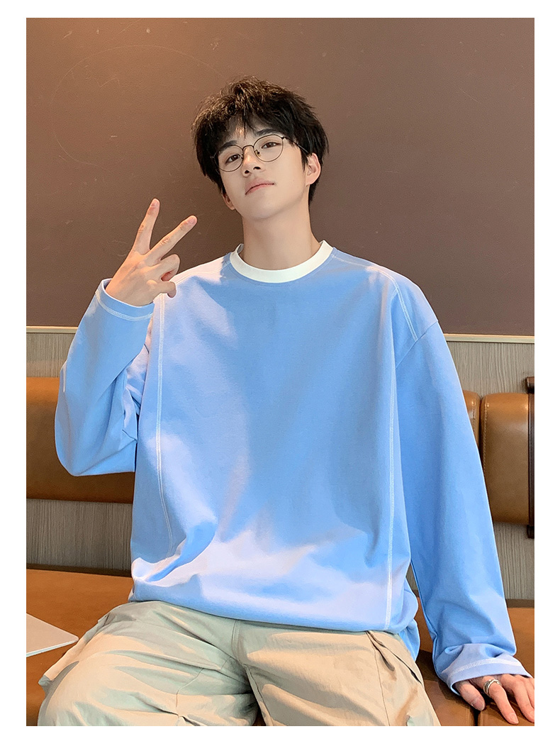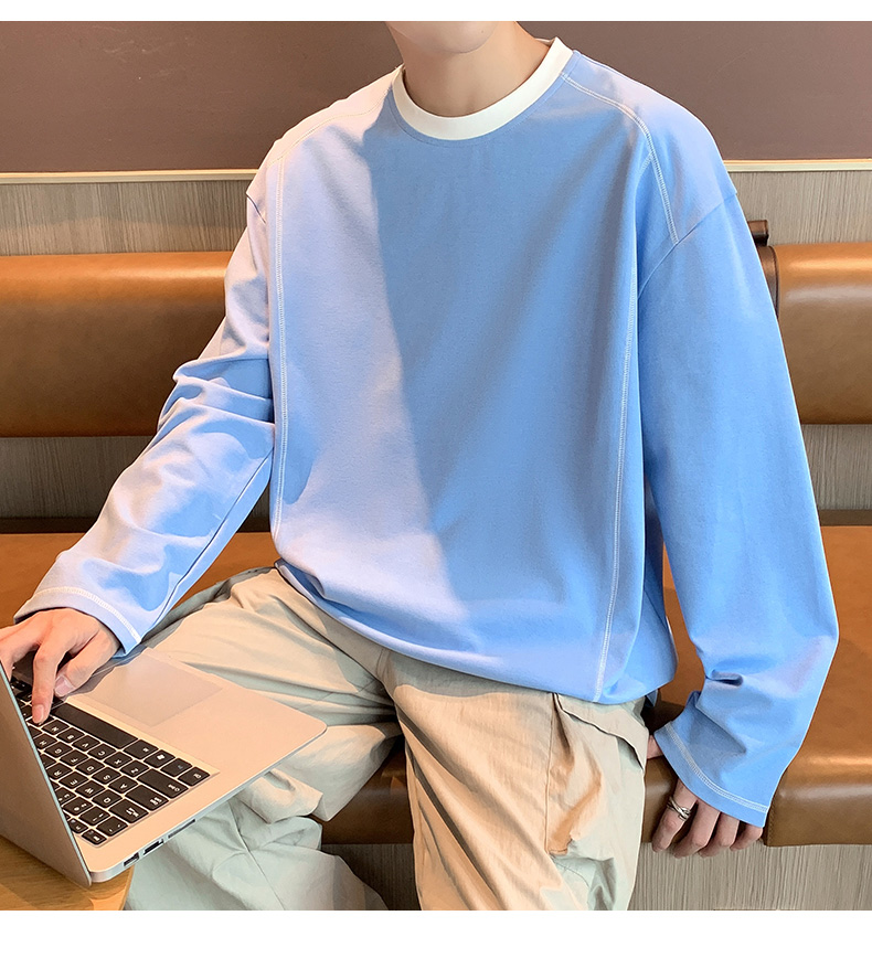 英国轻奢Schenvega 爆款迪桑平纹插色领长袖T恤卫衣A72-7902