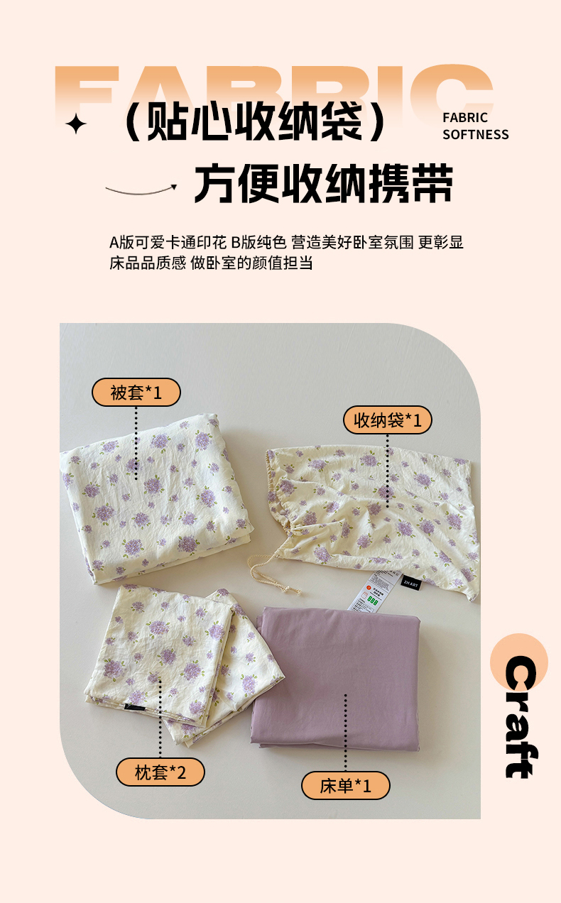 【99元清仓】 A类水洗棉云感棉四件套 热款韩版小布袋古法水洗