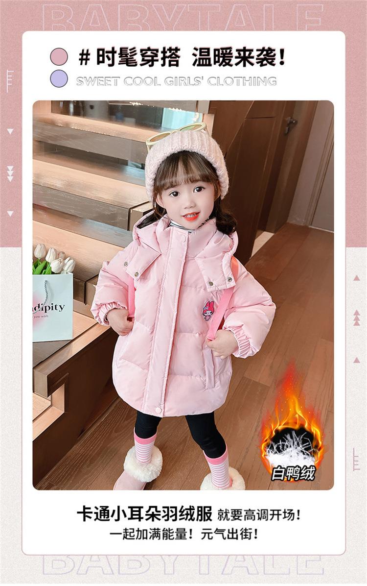 韩国儿童装女童冬装卡通羽绒服加绒保暖不透风连帽外套潮
