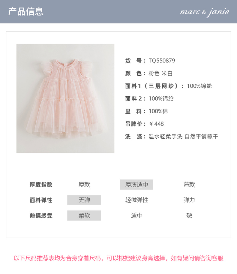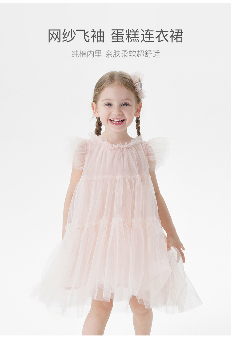马克珍妮女童小飞袖网纱蛋糕连衣裙宝宝公主裙夏装新款裙子550879