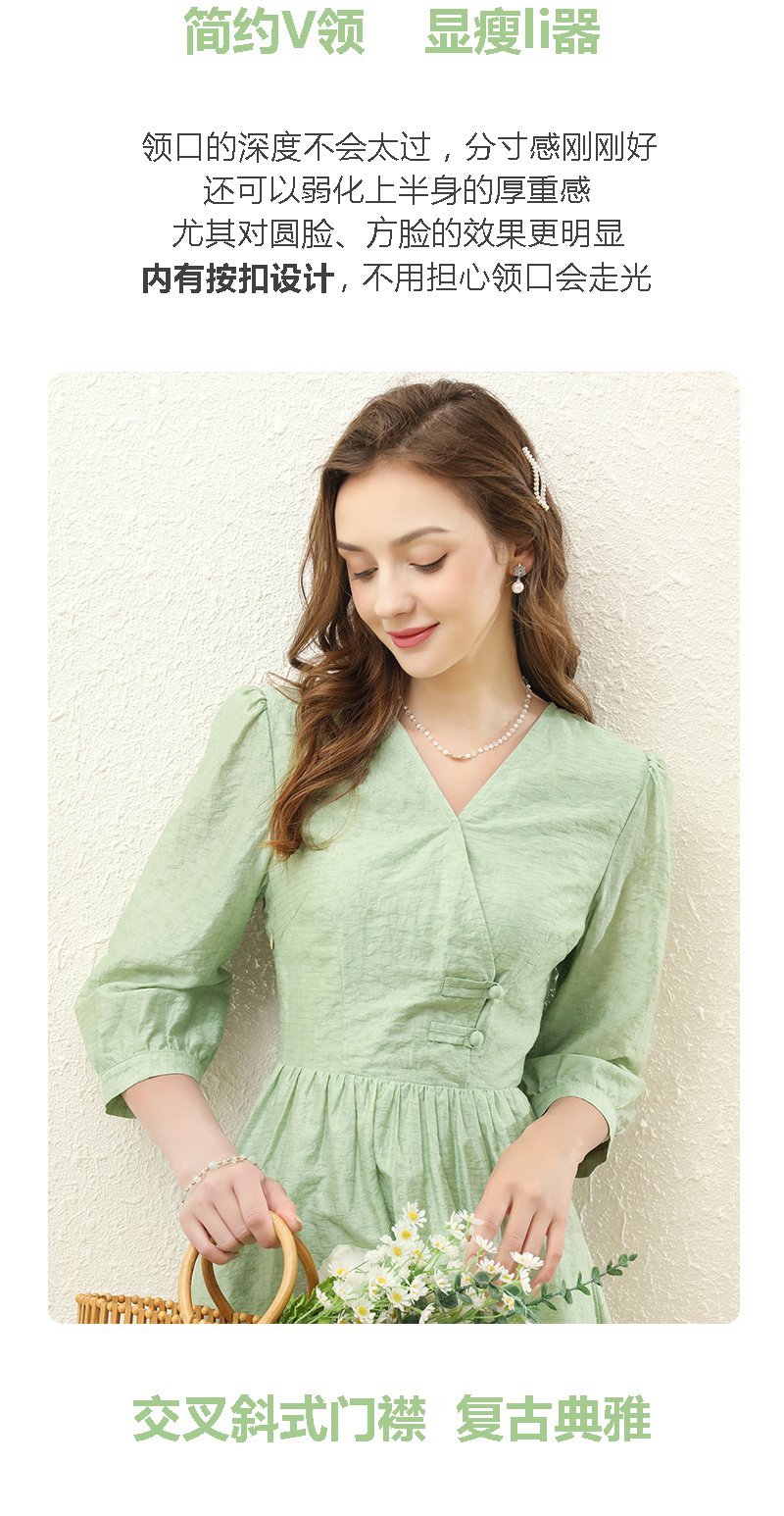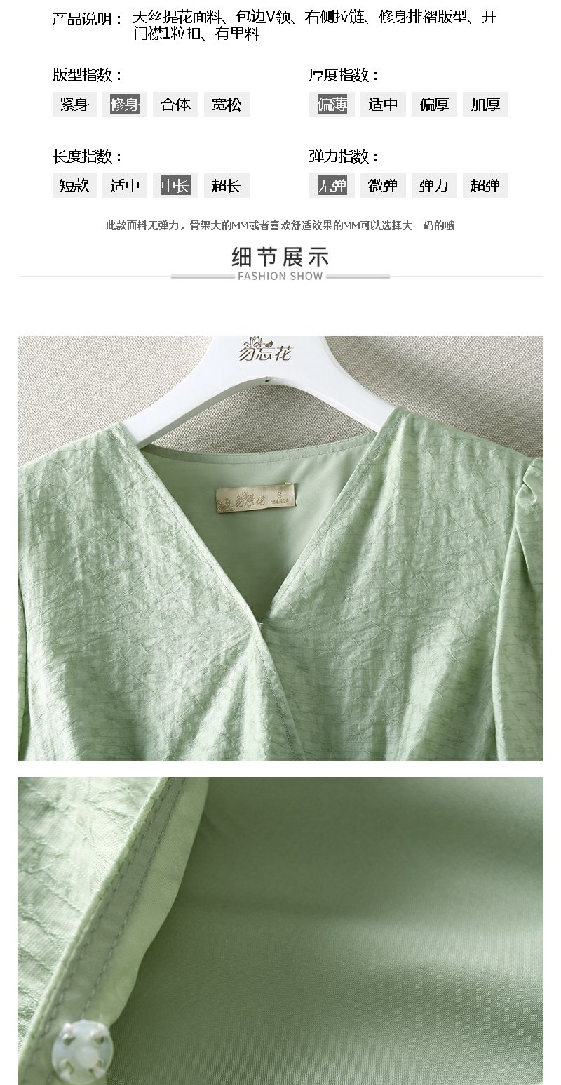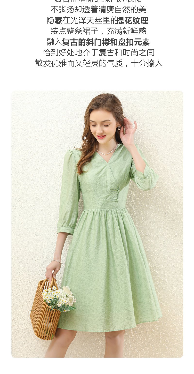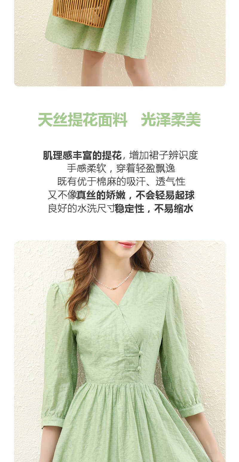 勿忘花绿色气质天丝连衣裙女装2023秋季新款复古时尚名媛别致裙子
