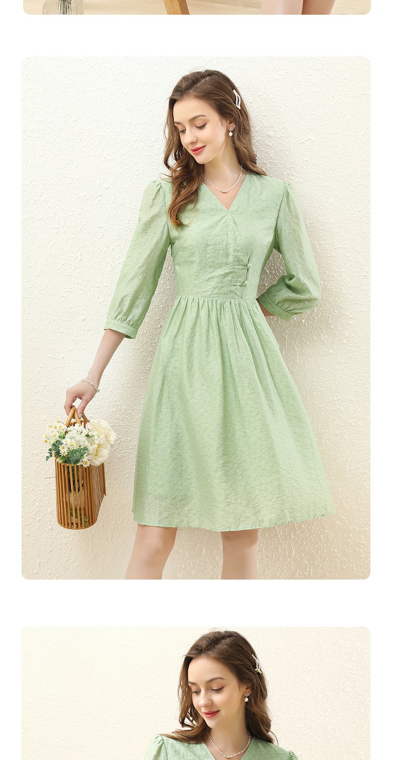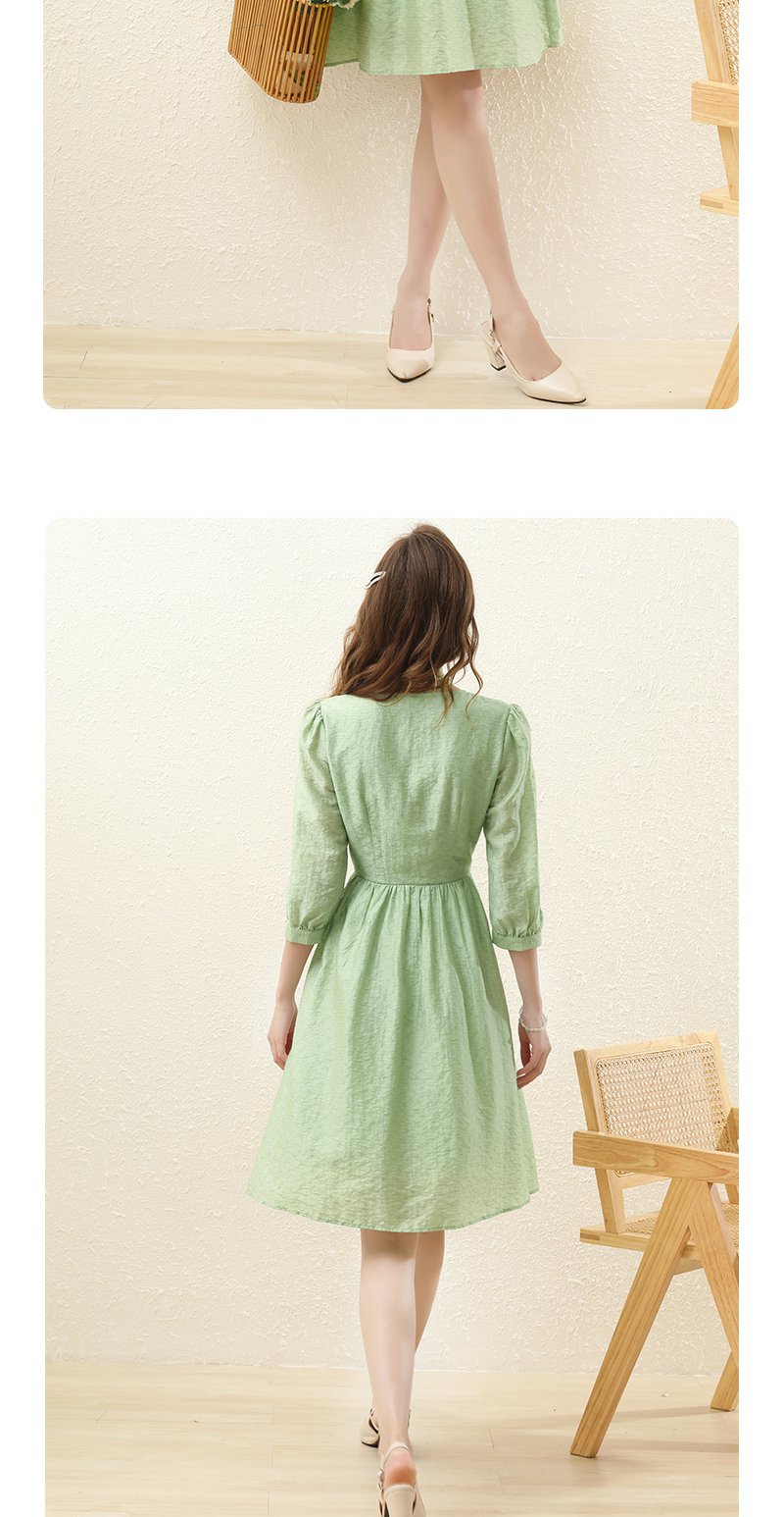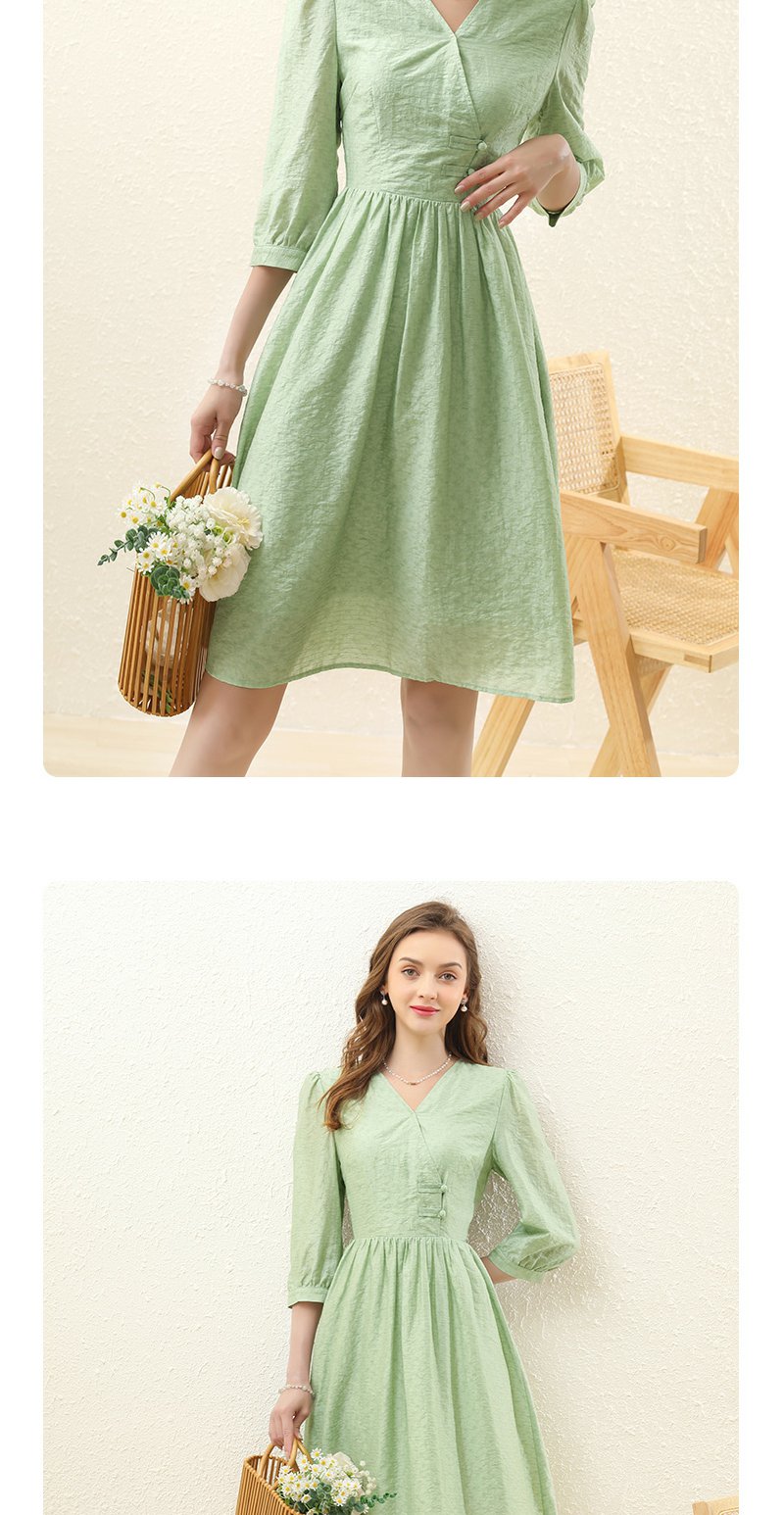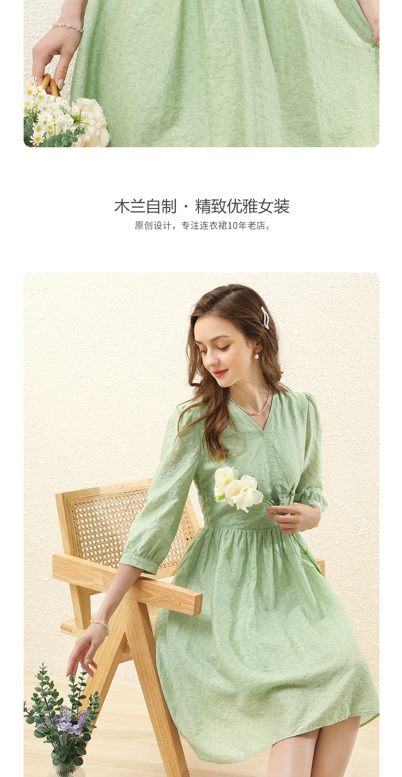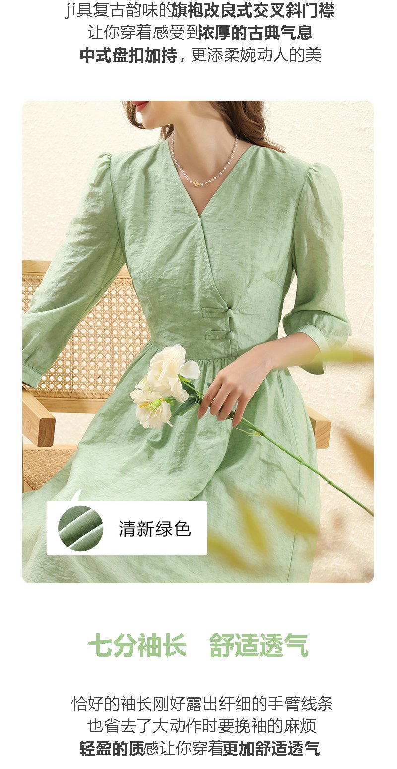勿忘花绿色气质天丝连衣裙女装2023秋季新款复古时尚名媛别致裙子