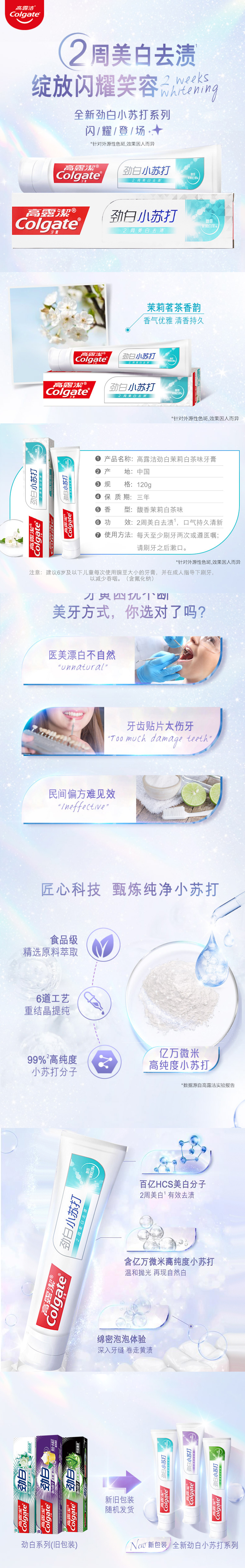 高露洁劲白茉莉白茶牙膏120克(新包装)