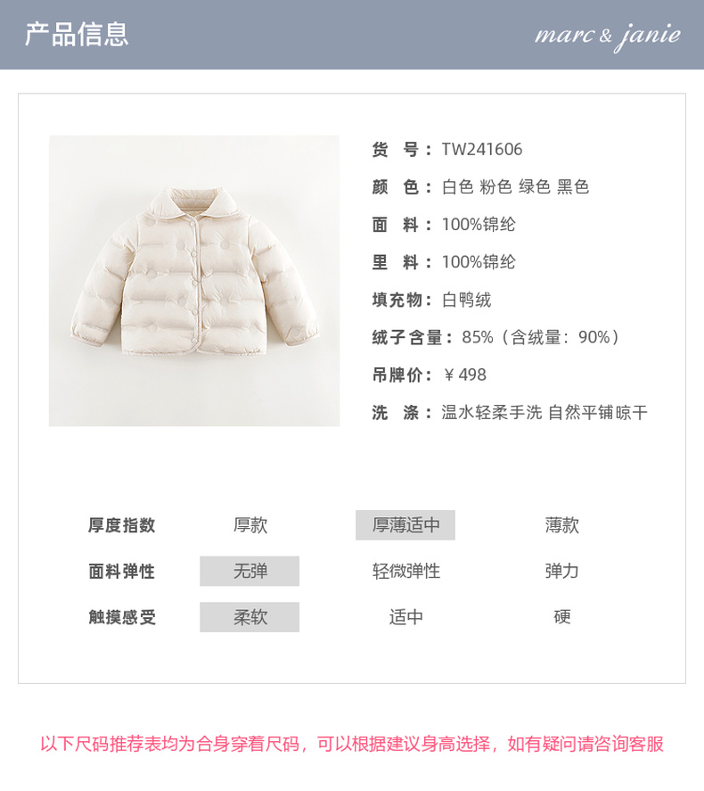 马克珍妮女童云感轻盈时尚翻领羽绒服2024年秋装新款241606