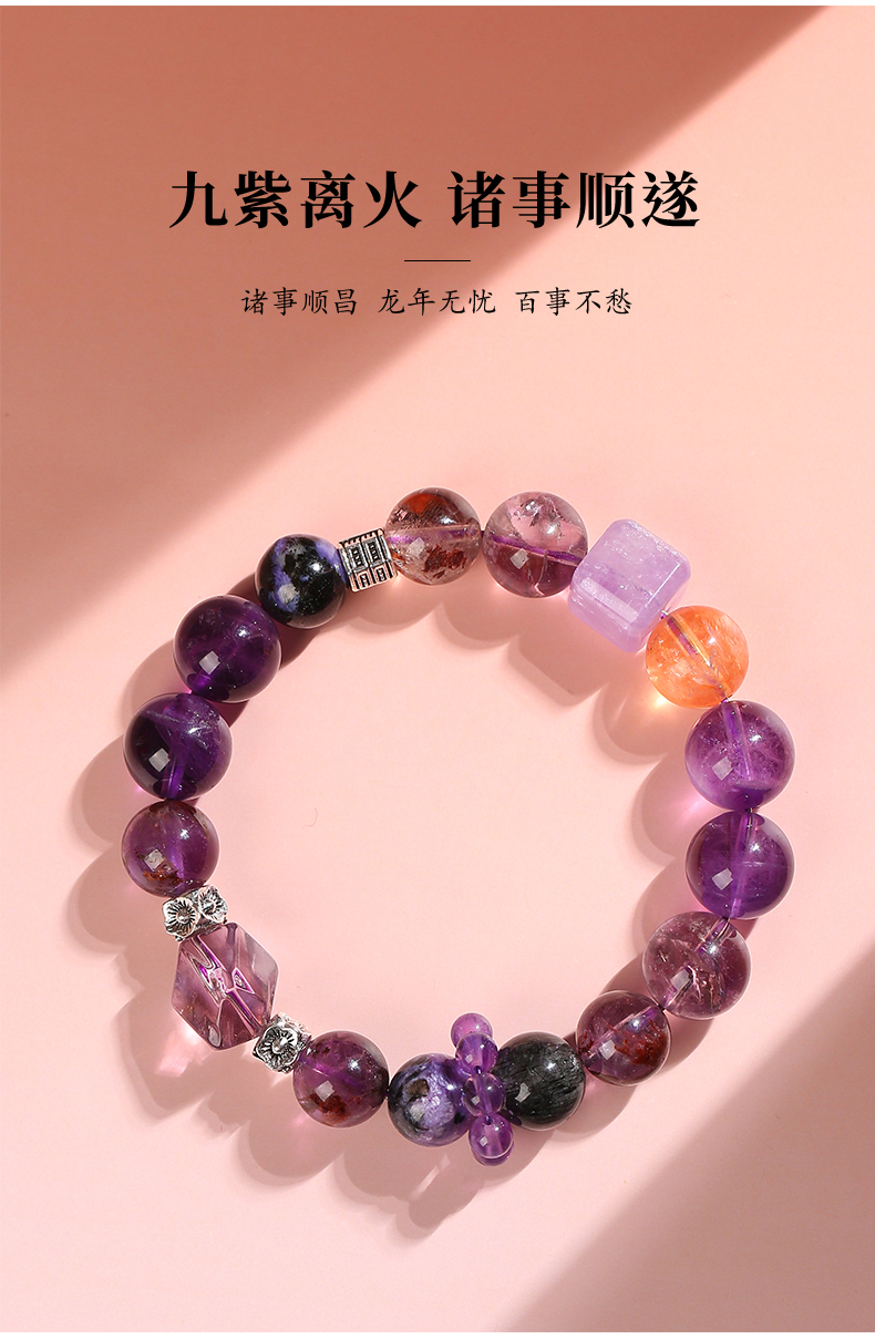 普陀山天然九紫离火手链紫水晶多宝手串