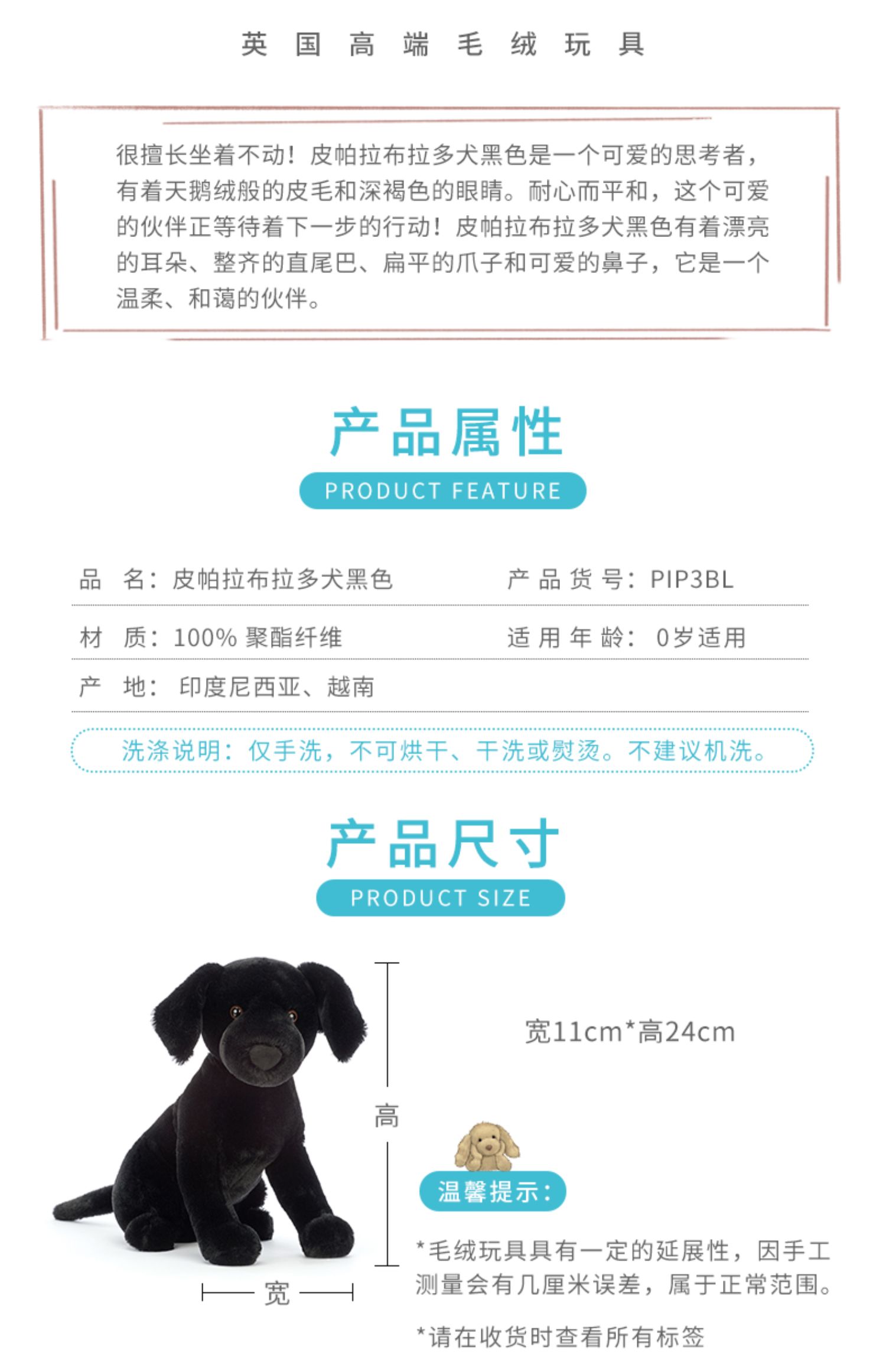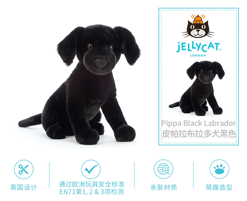 Jellycat 皮帕拉布拉多犬黑色