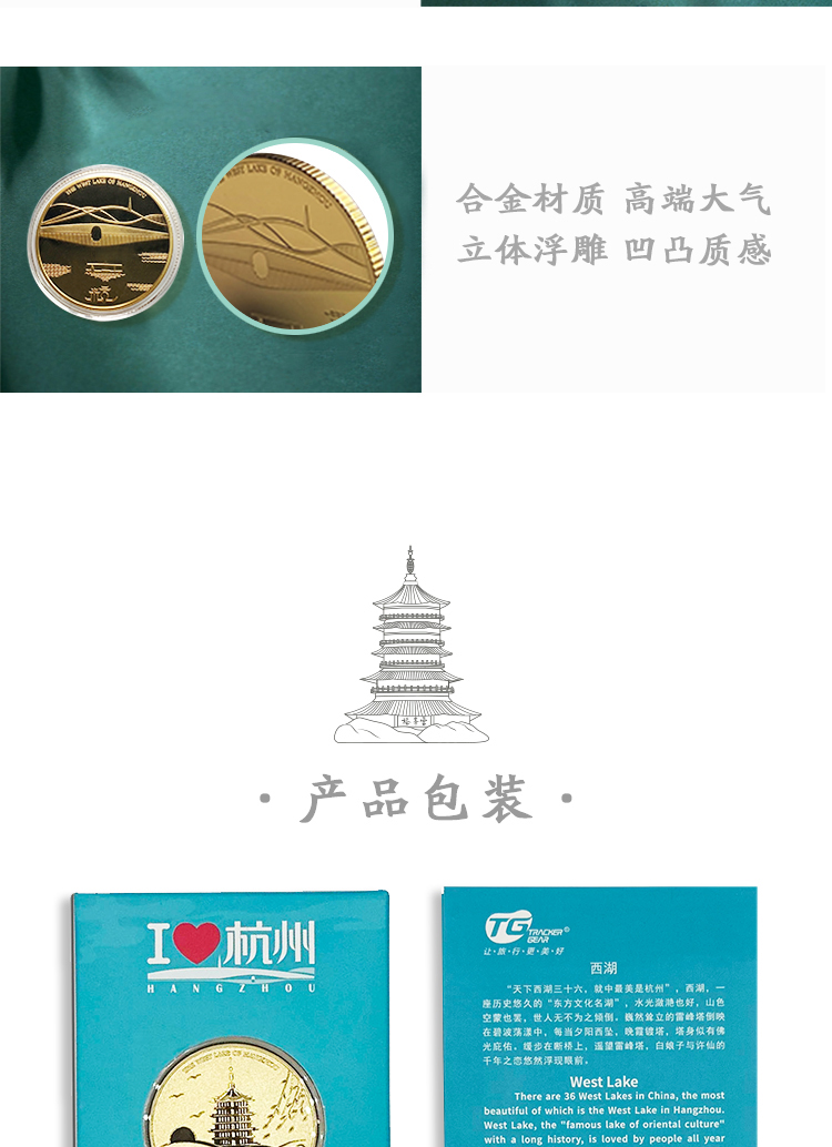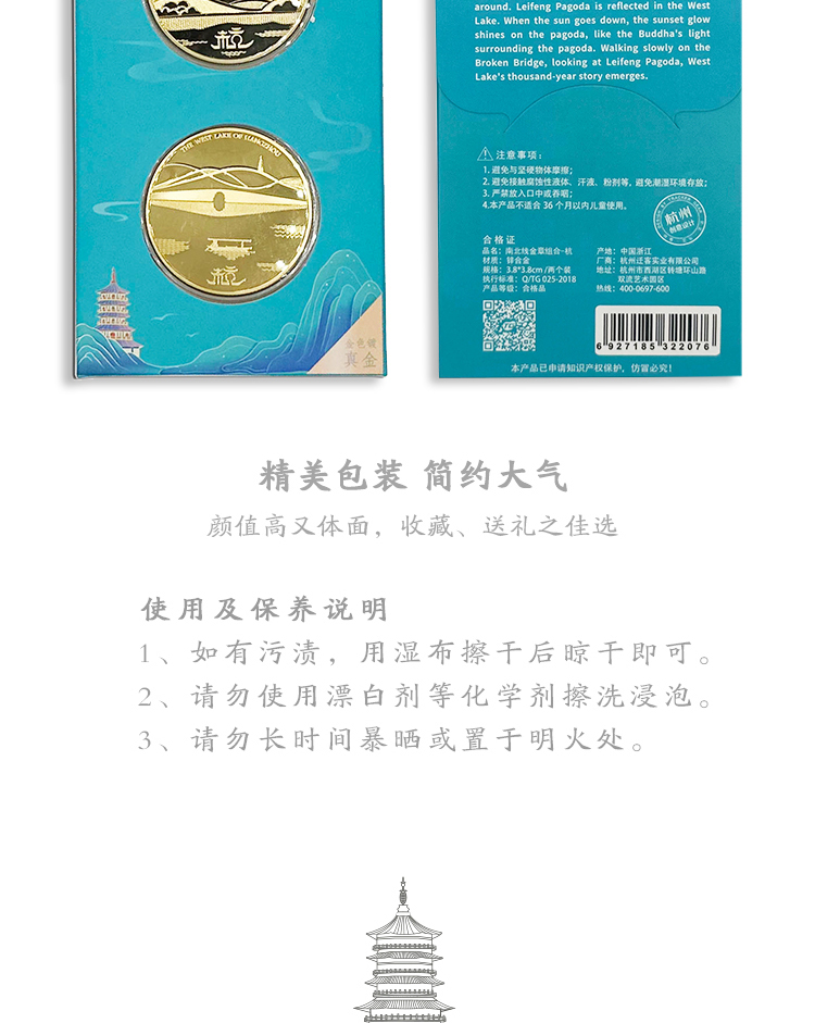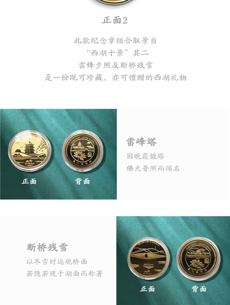 纪念金章组合杭州西湖南北线雷峰塔断桥