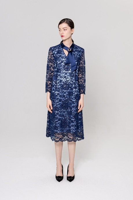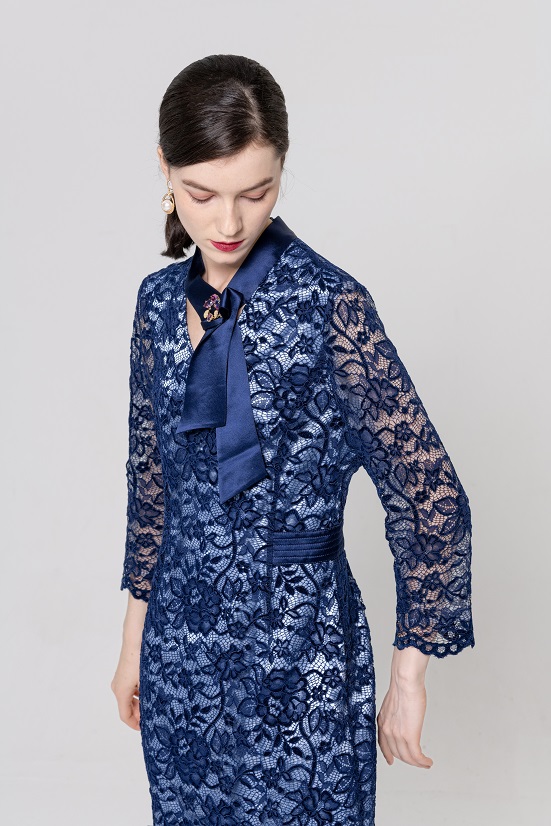 皮尔卡丹女装连衣裙法式蕾丝镂空淑女通勤百搭A字裙P1321E1865N0