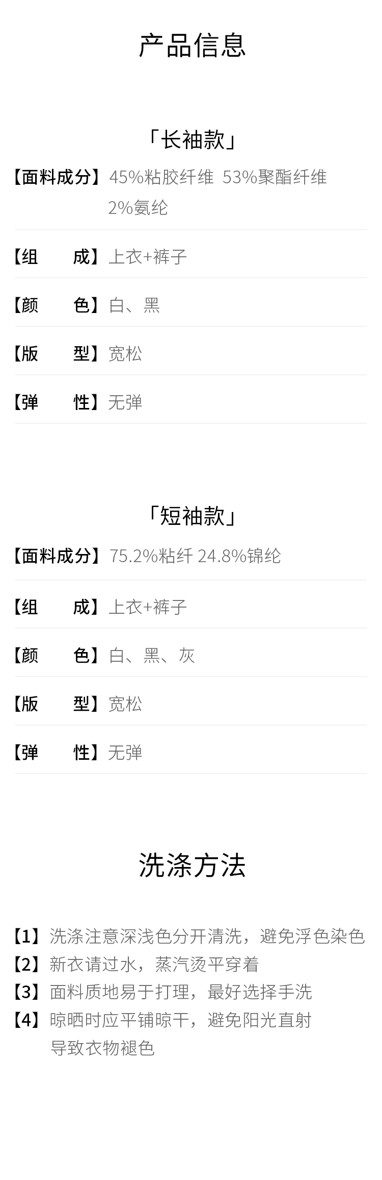 长袖和短袖款是不同面料哦,详情看页尾产品信息