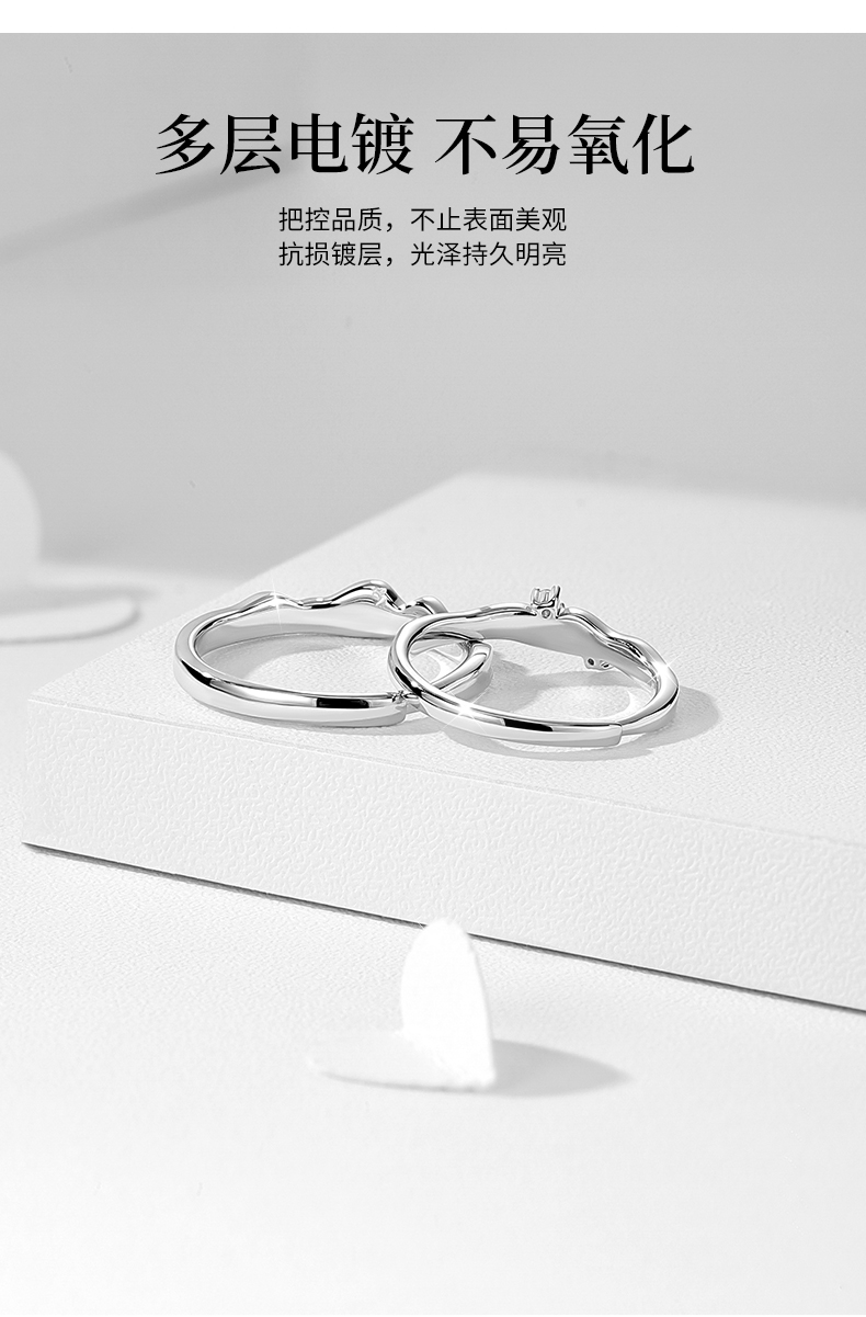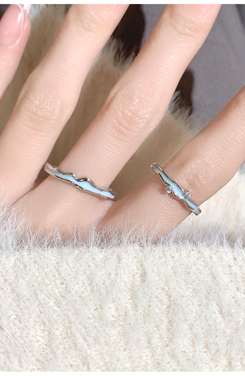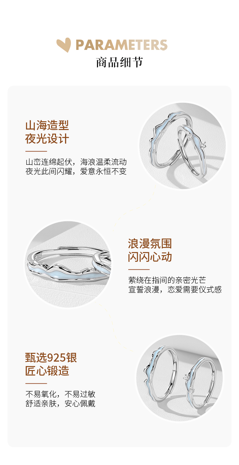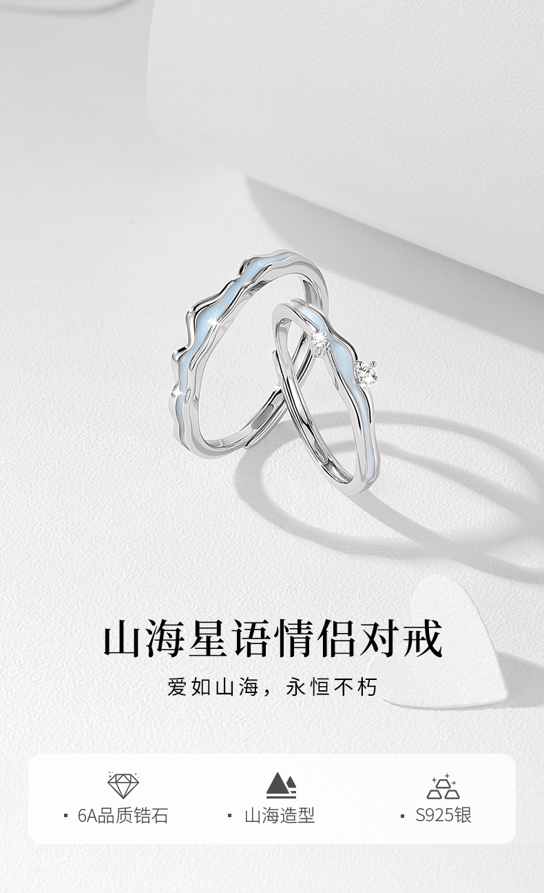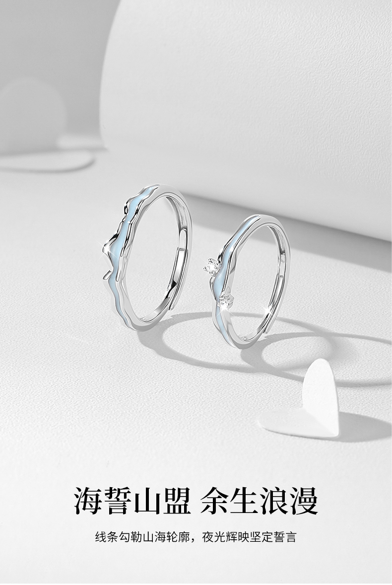 【夜光】卡蒂罗/KADER 海誓山盟 山海星雨情侣对戒 星河万里中久久小众轻奢开口素圈一对 礼盒纪念日告白配饰