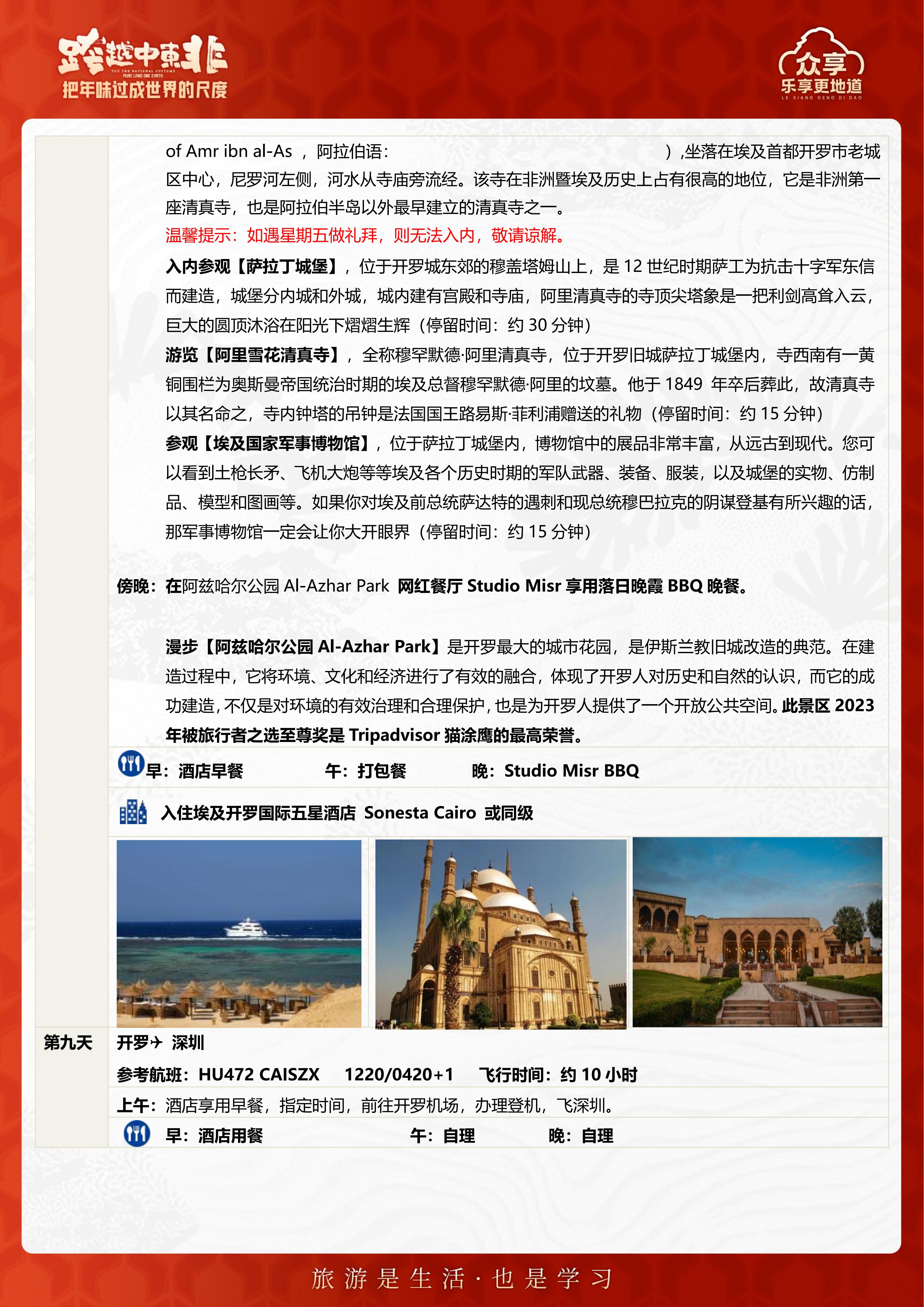 【春节】<埃及10天双飞-深圳直飞往返>全程国际五星酒店、亚历山大一日游、大埃及博物馆、文明博物馆、丹达拉神庙、卡纳克神庙、吉萨金字塔群、狮身人面像、马车游卢克索神庙、乘坐尼罗河小风帆、汗哈利利集市