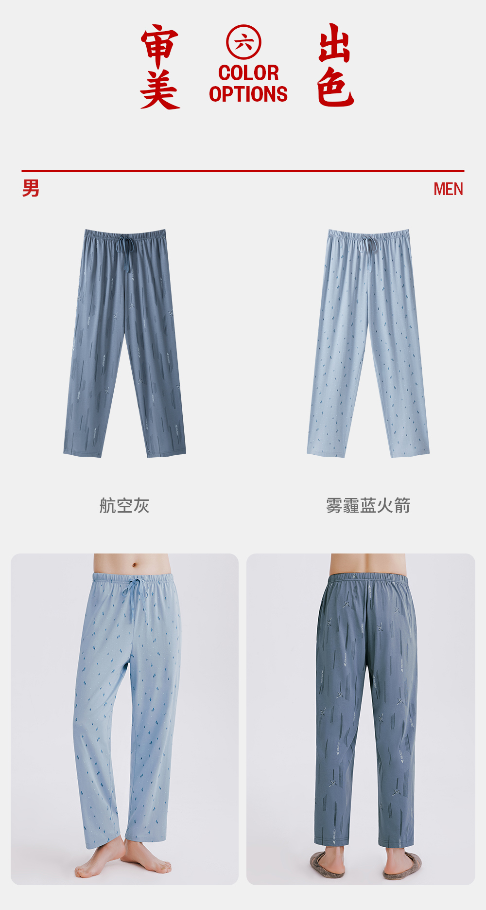 三枪水柔棉男家居长裤T60023B01