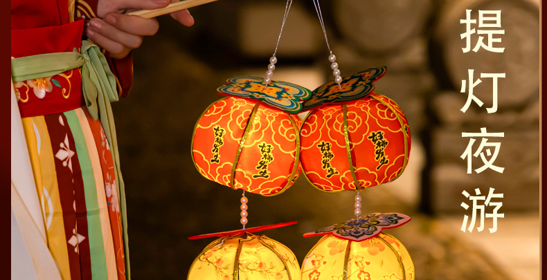 【创意柿柿如意灯笼】中秋节柿子灯笼古风花灯儿童手提发光diy材料包手工制作活动。rb