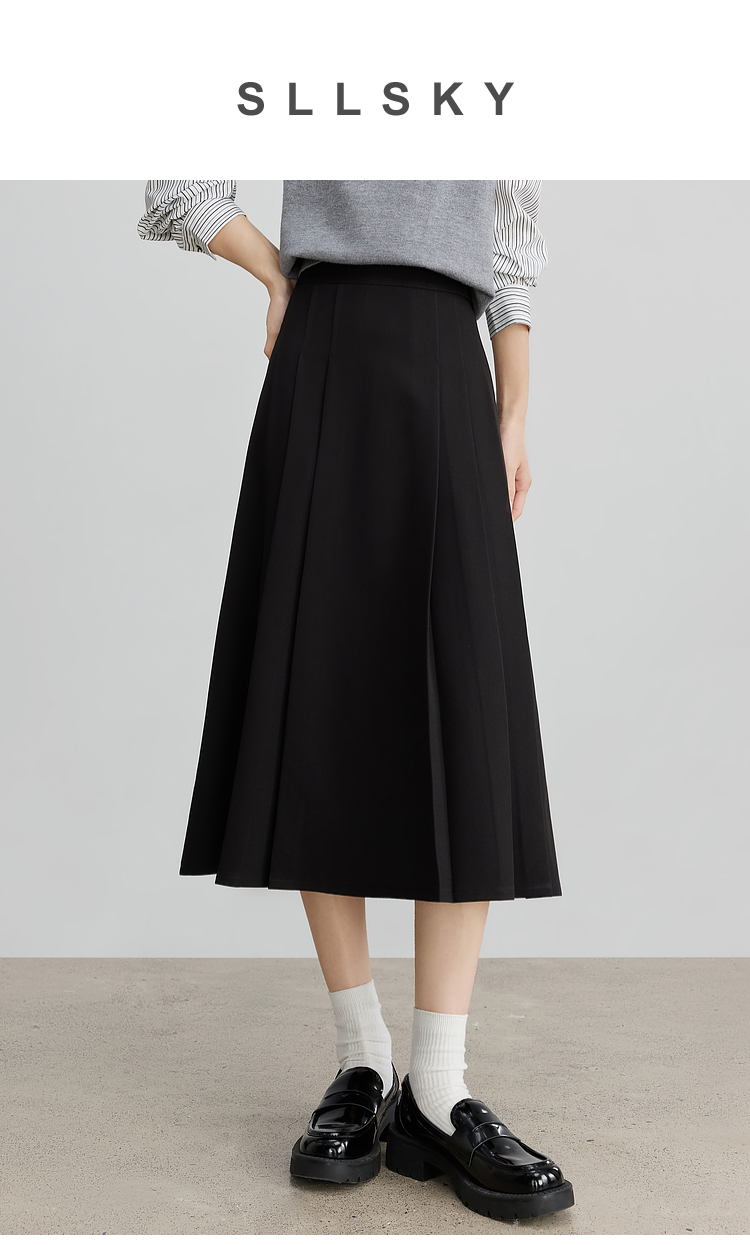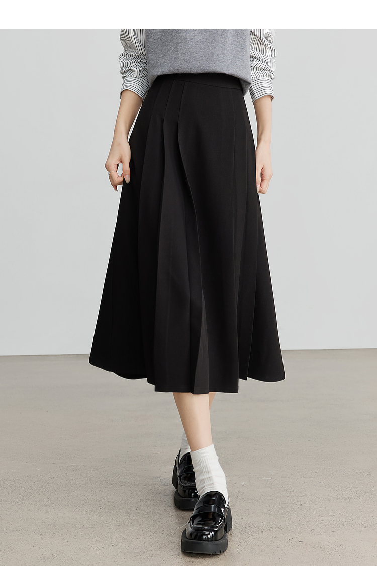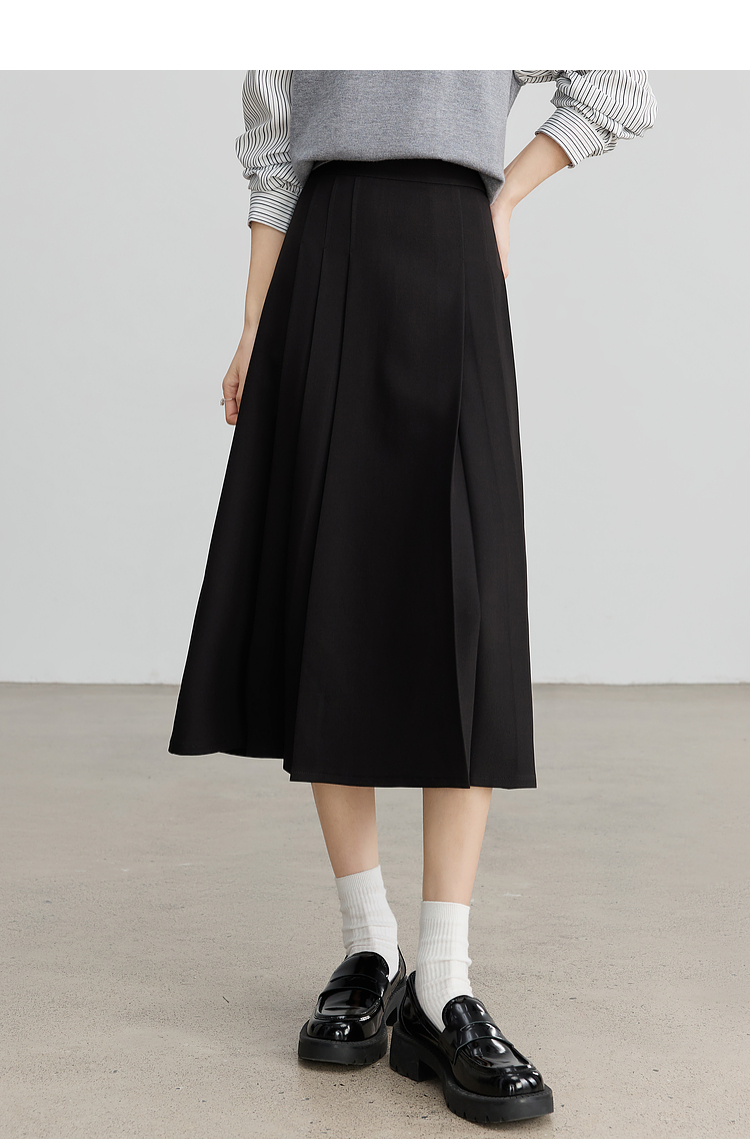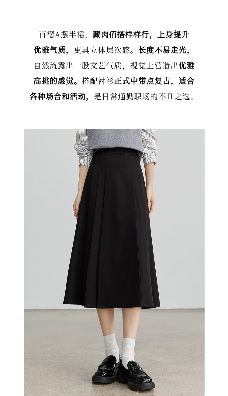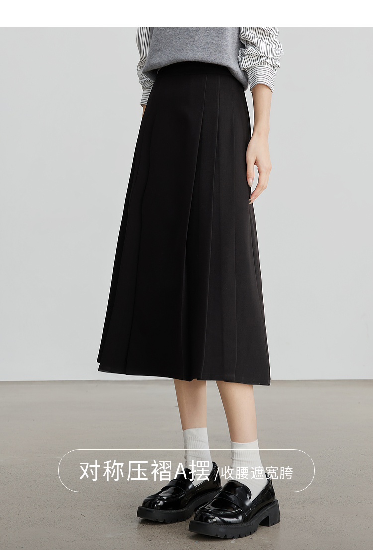 【专属特价】熙世界通勤职场风百褶半身裙女高腰显瘦气质a字裙子2025春秋新款