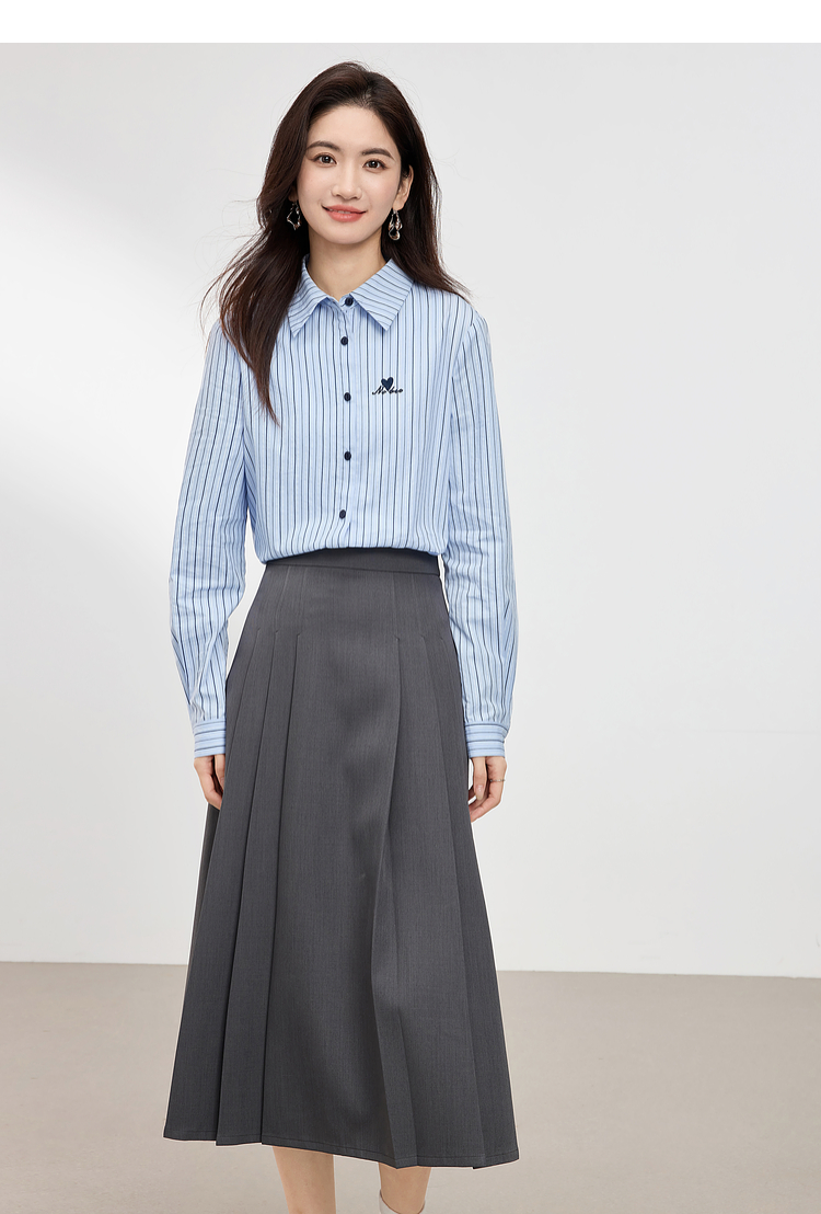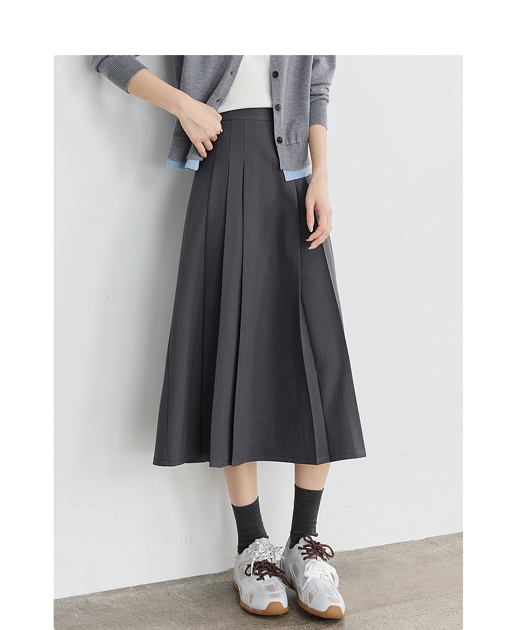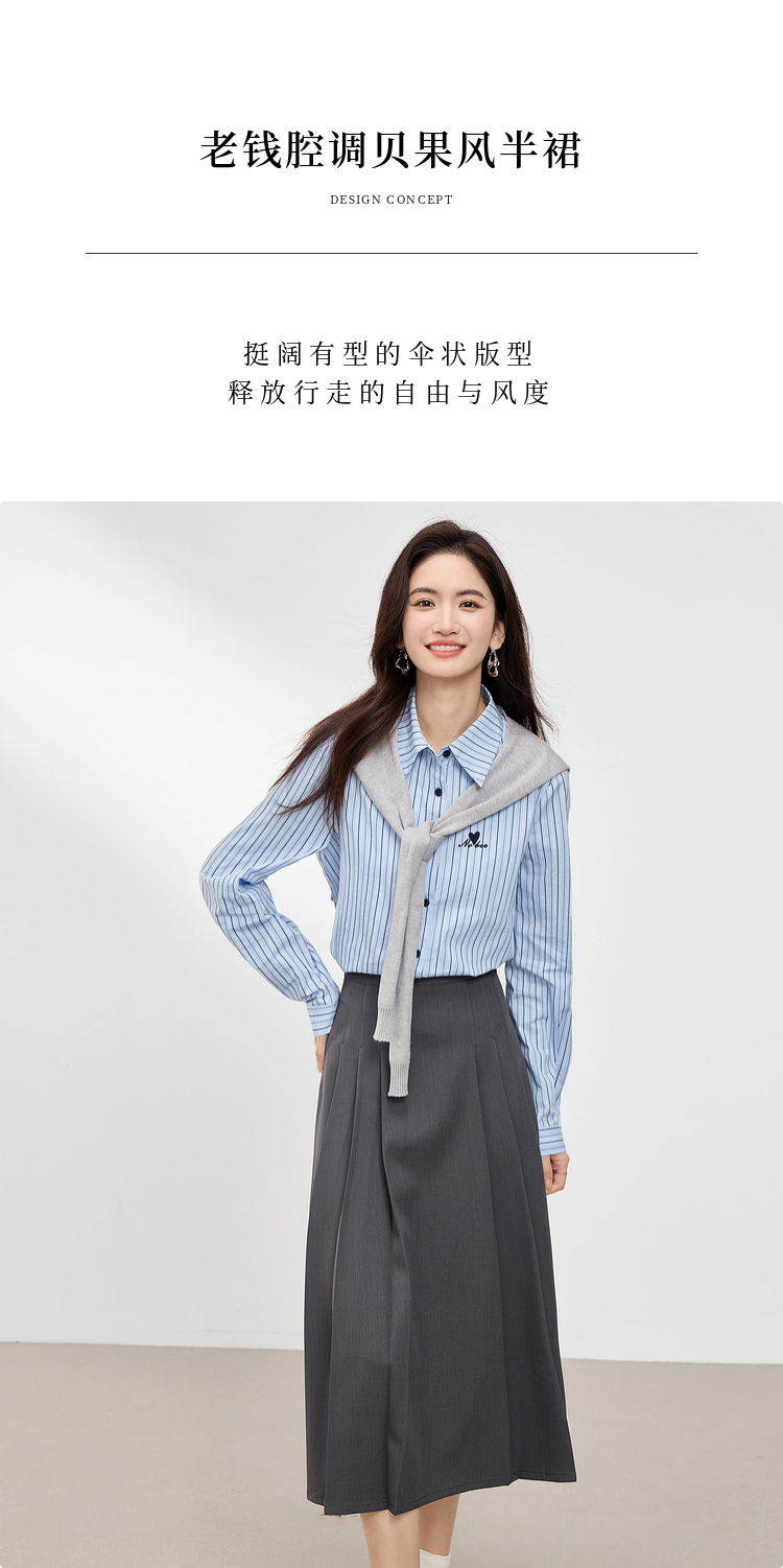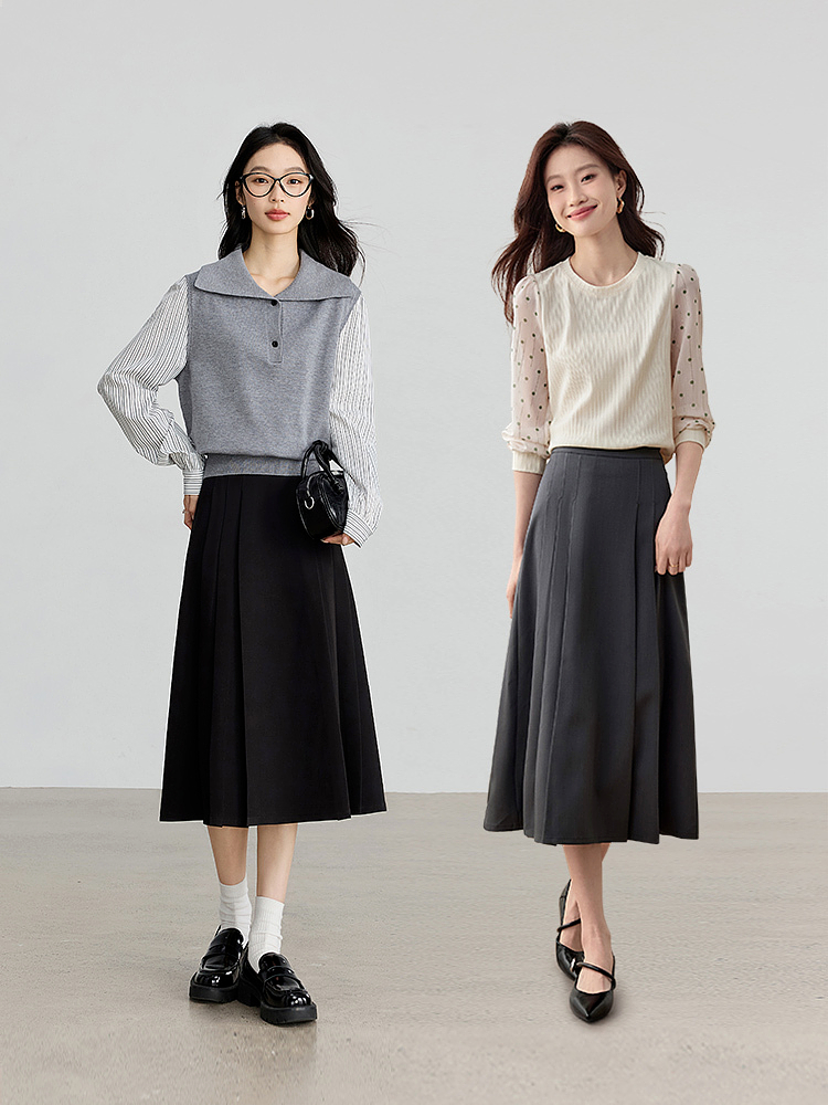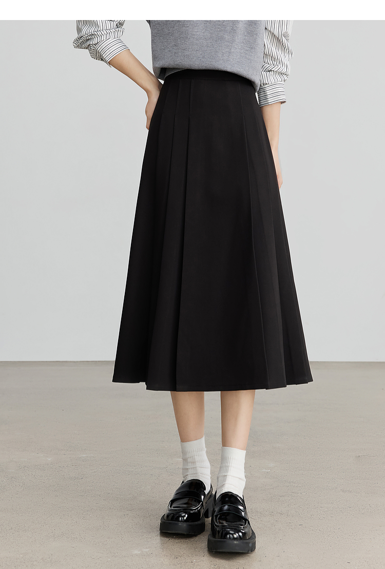 【专属特价】熙世界通勤职场风百褶半身裙女高腰显瘦气质a字裙子2025春秋新款
