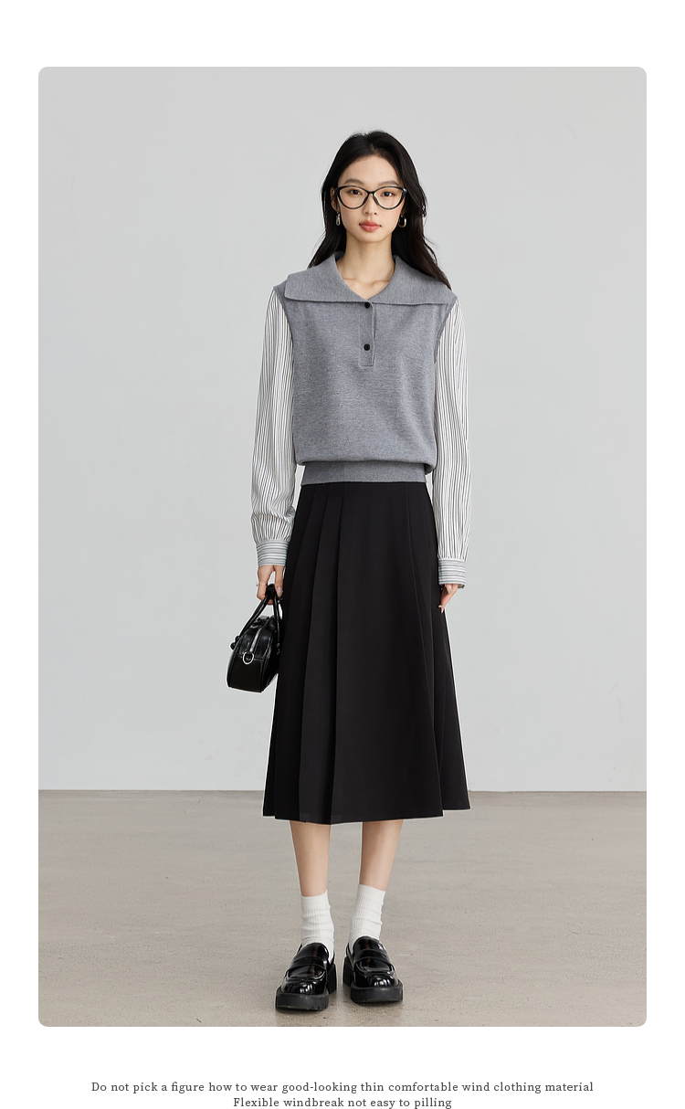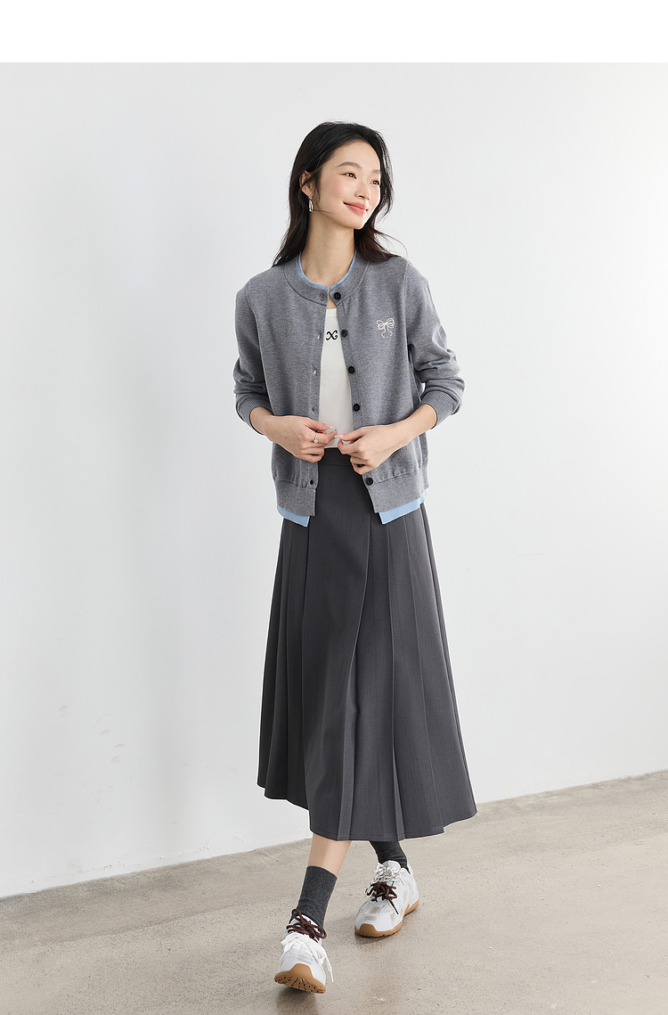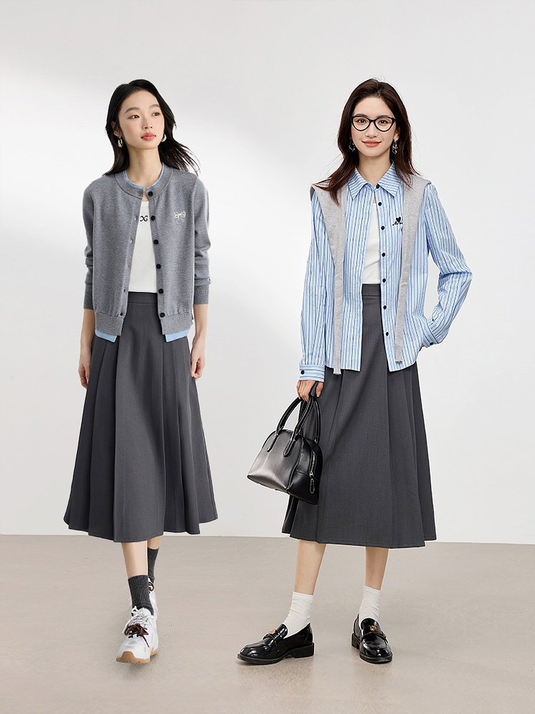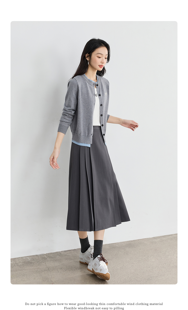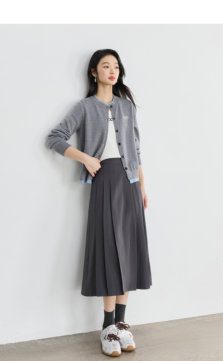 【专属特价】熙世界通勤职场风百褶半身裙女高腰显瘦气质a字裙子2025春秋新款