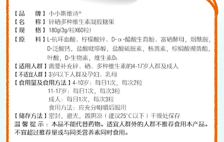 小小斯维诗锌硒多种维生素凝胶糖果60粒装