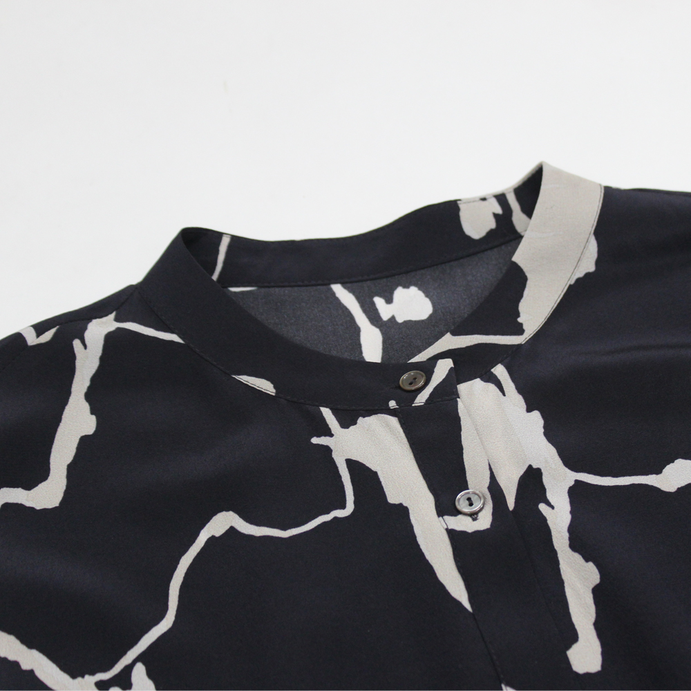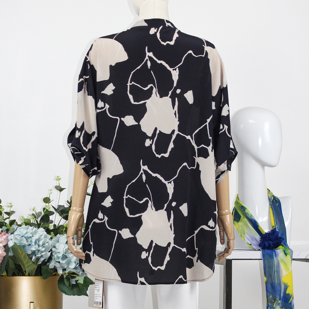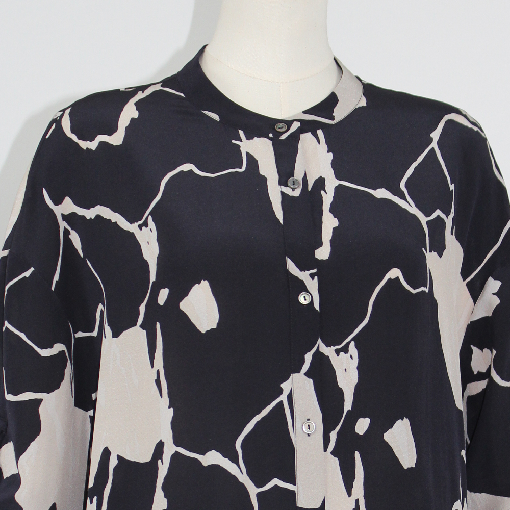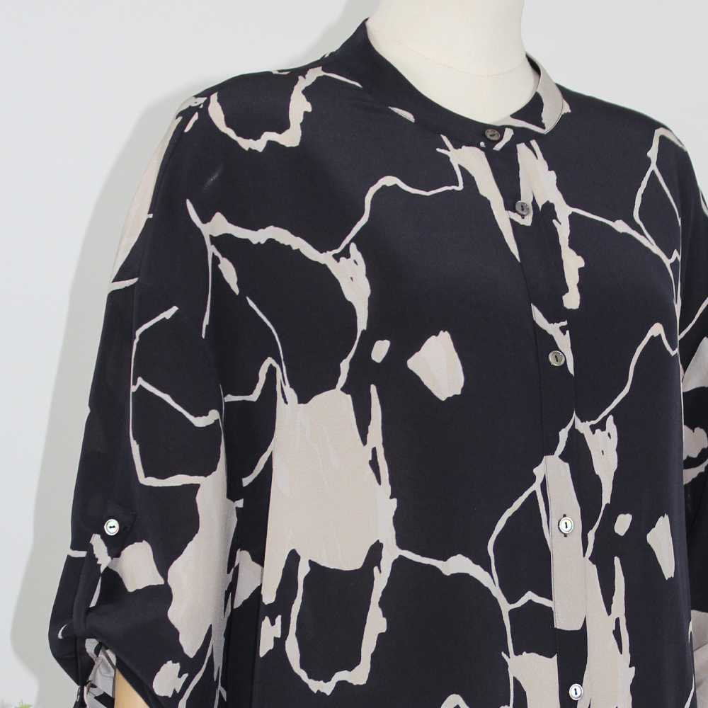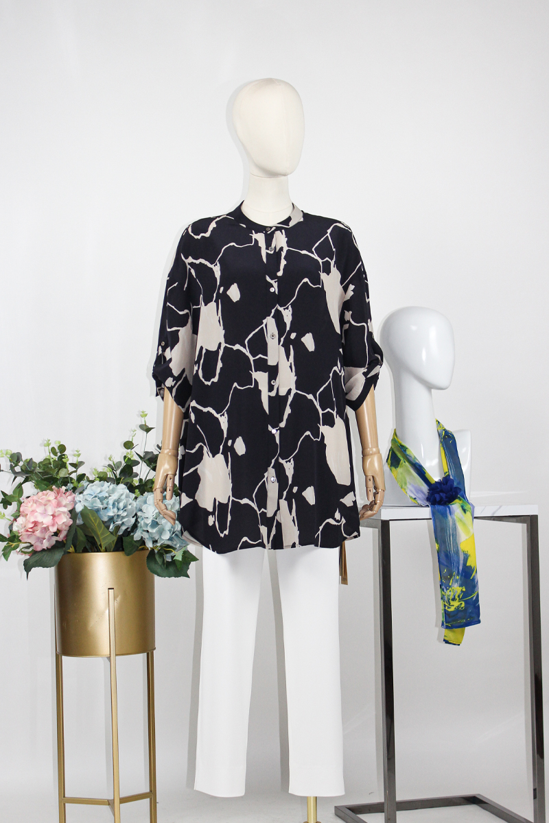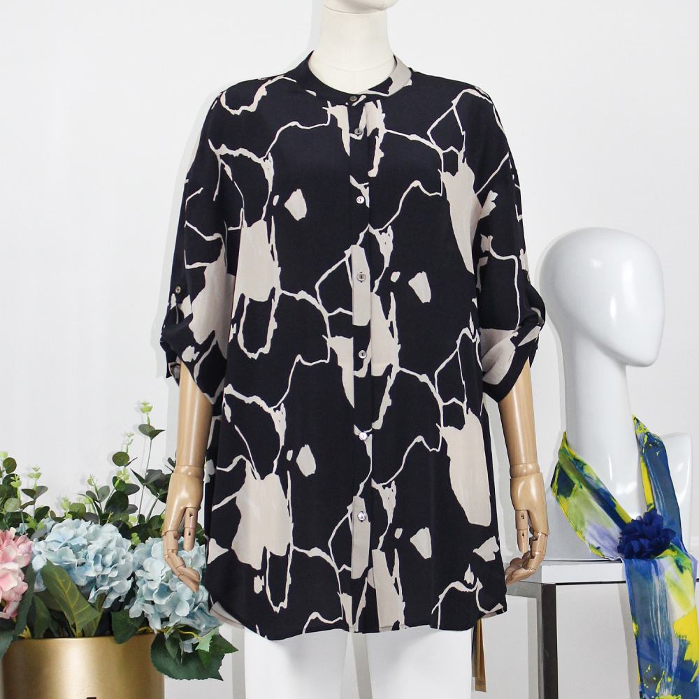 FOCALS福柯斯女装夏季新款桑蚕丝宽松休闲中长印花衬衫F2Y6S033BM