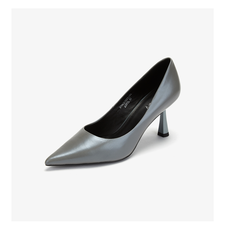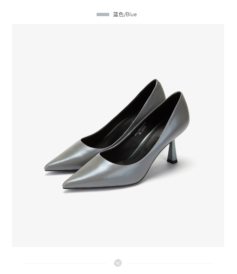 westory2019新品光面尖头高跟鞋女细跟真皮社交女鞋W29CE70211