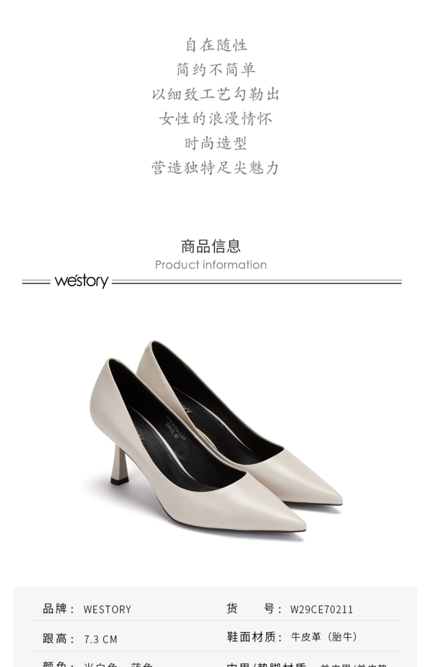 westory新款纯色舒适优雅气质小尖头细高跟单鞋S24CE75321